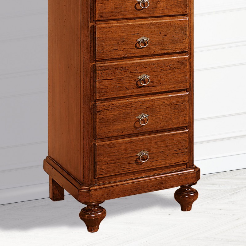 Cassettiera 8 cassetti in legno arte povera tinta noce L.55 x P.45 H.149