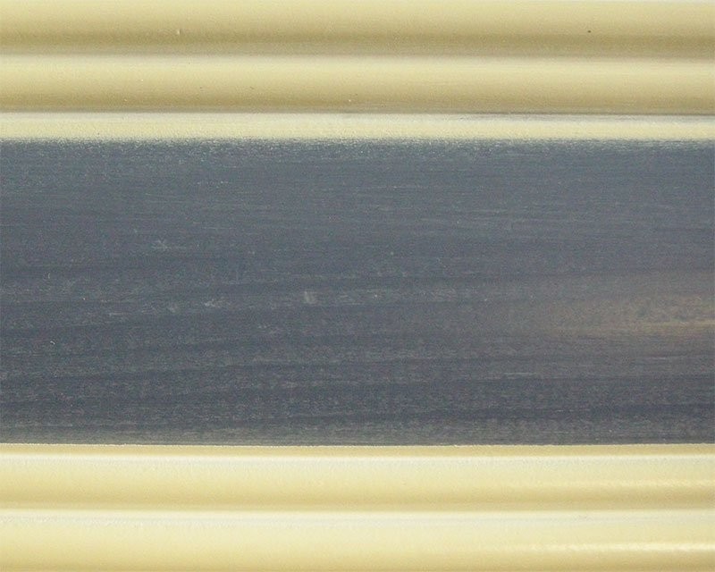 particolare finitura colore blu leggermente trasparente per non coprire le caratteristiche venature e nodi del legno di Abete.