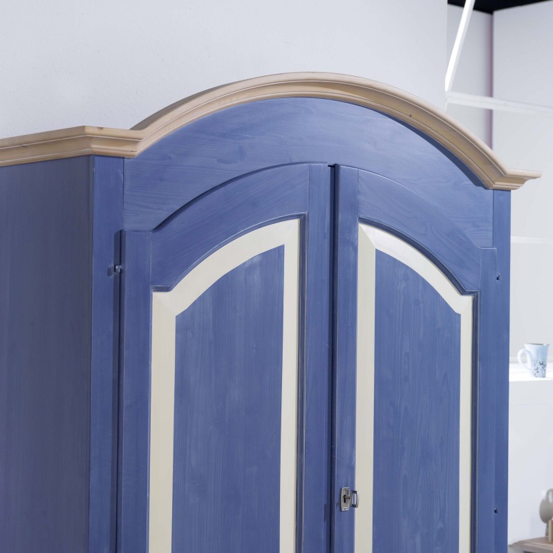 Armadio 2 porte in legno laccato blu e miele arte povera L.125 x P.60 H.200