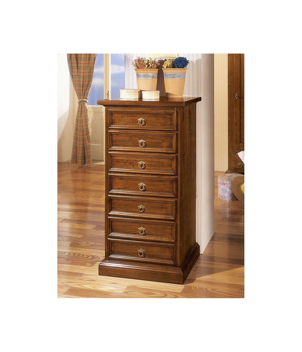 Cassettiera 7 cassetti in legno arte povera tinta noce L.60 x P.47 H.115