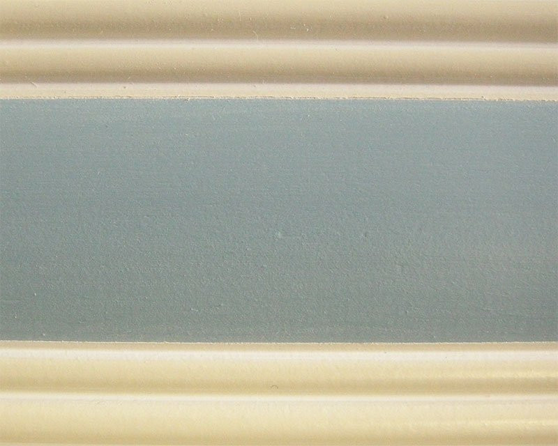 particolare finitura colore azzurro leggermente trasparente per risaltare le caratteristiche venature e nodi del legno di Abete.
