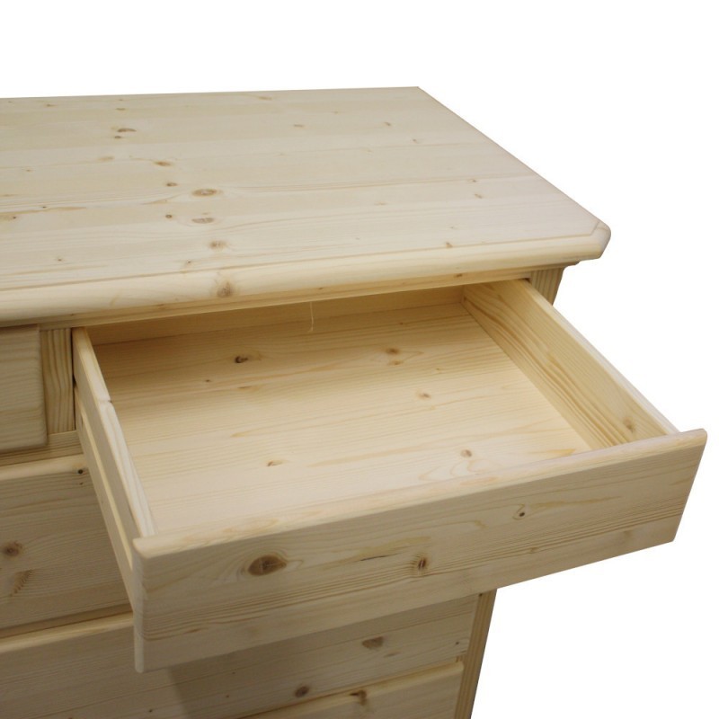 Struttura, fianchi, fondo, gambe, piano, facciate e fondi dei cassetti: legno massello di Abete.