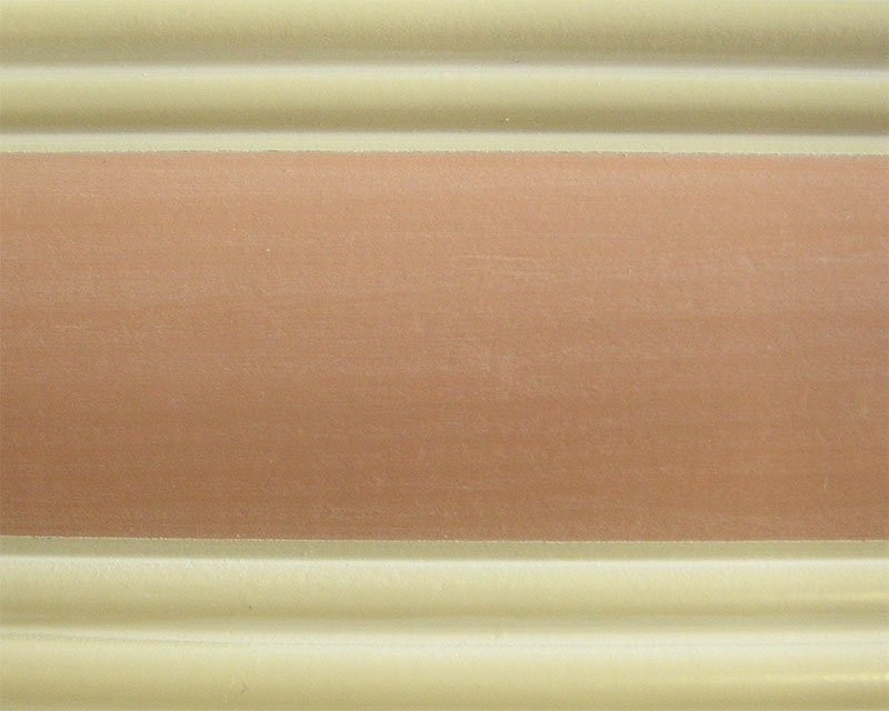 particolare finitura colore rosa leggermente trasparente per risaltare le caratteristiche venature e nodi del legno di Abete.