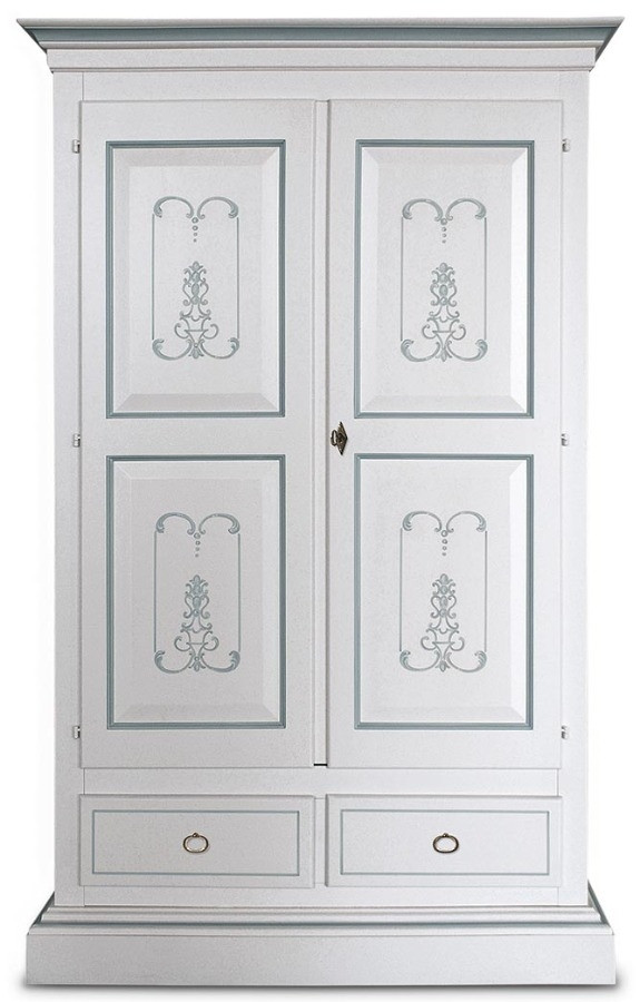 Armadio classico 2 porte legno bianco e filetti azzurro cenere 128x61x200 (6001)