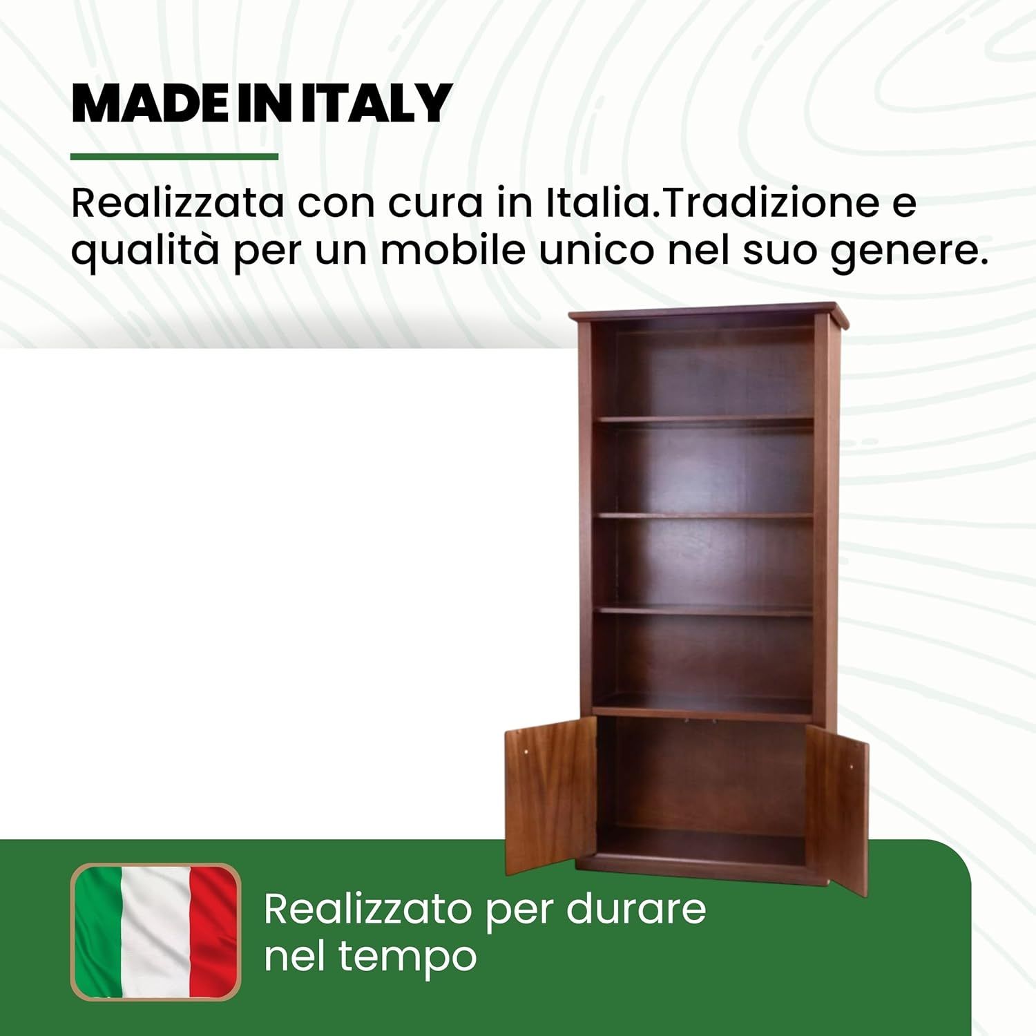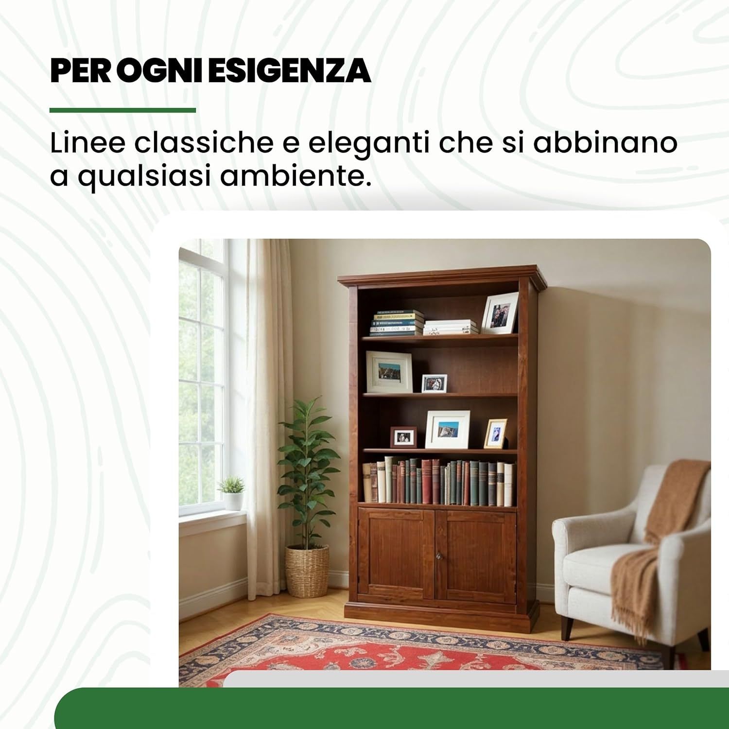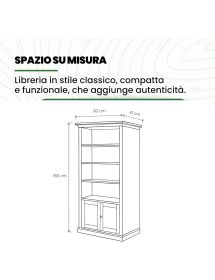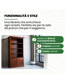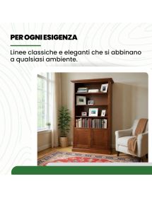 Questa libreria in legno massello è progettata per offrire la massima praticità senza farti rinunciare allo stile. Con i suoi numerosi ripiani, è perfetta per esporre libri, oggetti decorativi o ricordi di famiglia, mantenendo al contempo riparati e protetti dalla polvere gli oggetti che non si desidera mostrare, grazie al comodo ripiano interno. Robusta e solida, aggiunge raffinatezza e design ad ogni spazio della casa, grazie all'inconfondibile eleganza delle sue linee classiche.
