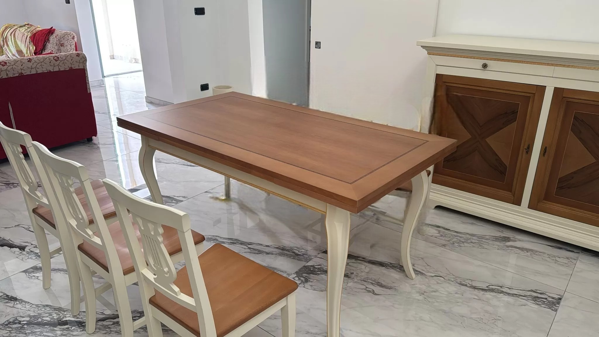 finitura tavolo: basamento laccato avorio