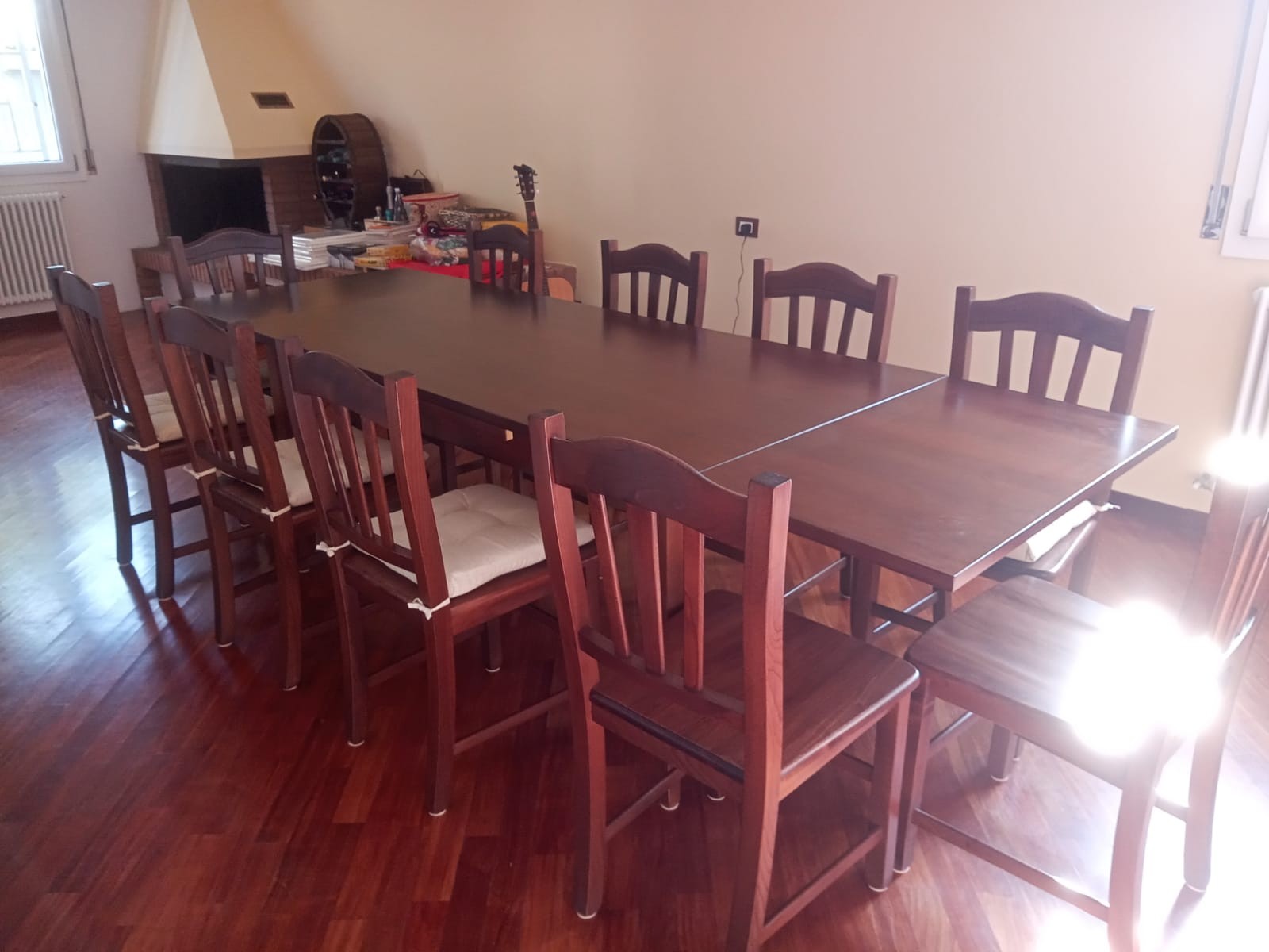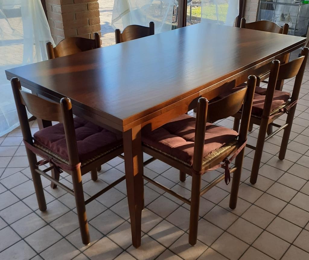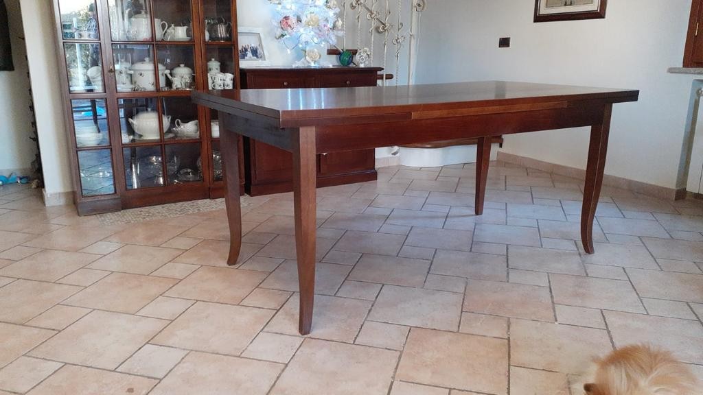 Tavolo allungabile con 2 allunghe da 40 cm. cad. e gambe a sciabola