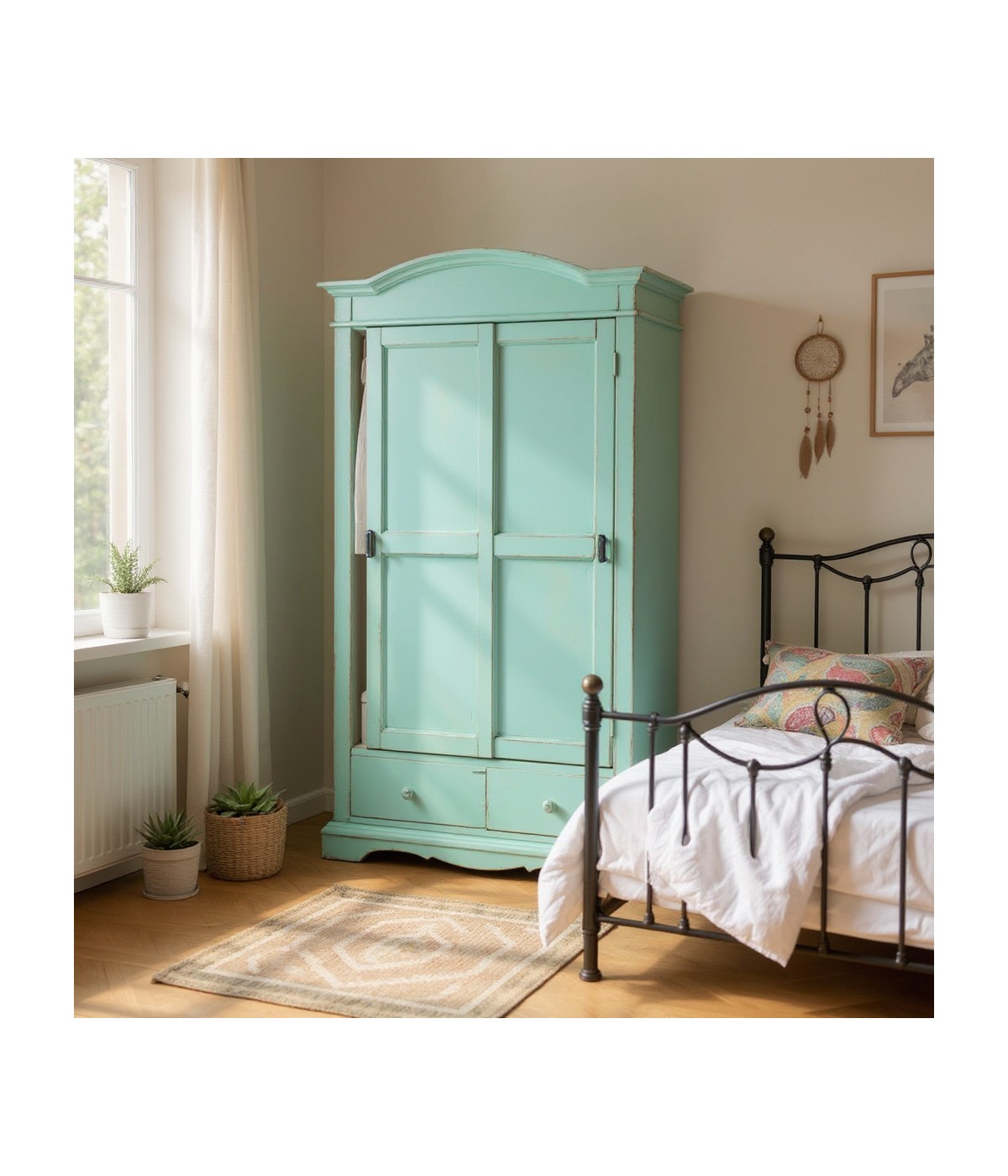 Cerchi un armadio 2 ante vintage che unisca charme retrò e praticità? Questo armadio shabby in legno laccato verde consumato è il pezzo d’arredo perfetto per chi desidera arredare con personalità e stile i propri ambienti.