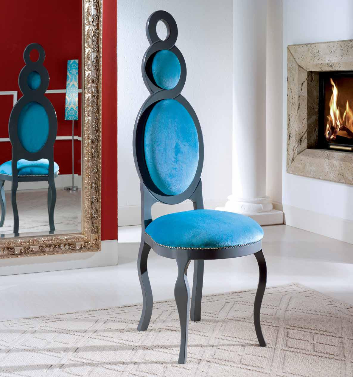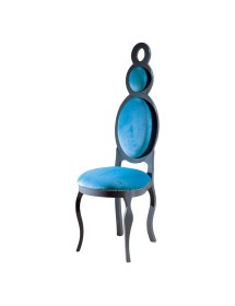 SEDIA IMBOTTITA IN LEGNO LACCATO GRIGIO/AZZURRO