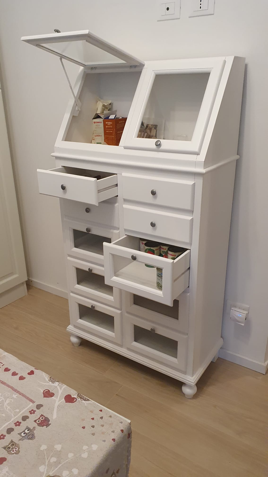DISPENSA DA CUCINA LACCATO BIANCO OPACO 10 CASSETTI E 2 ANTE RIBALTA