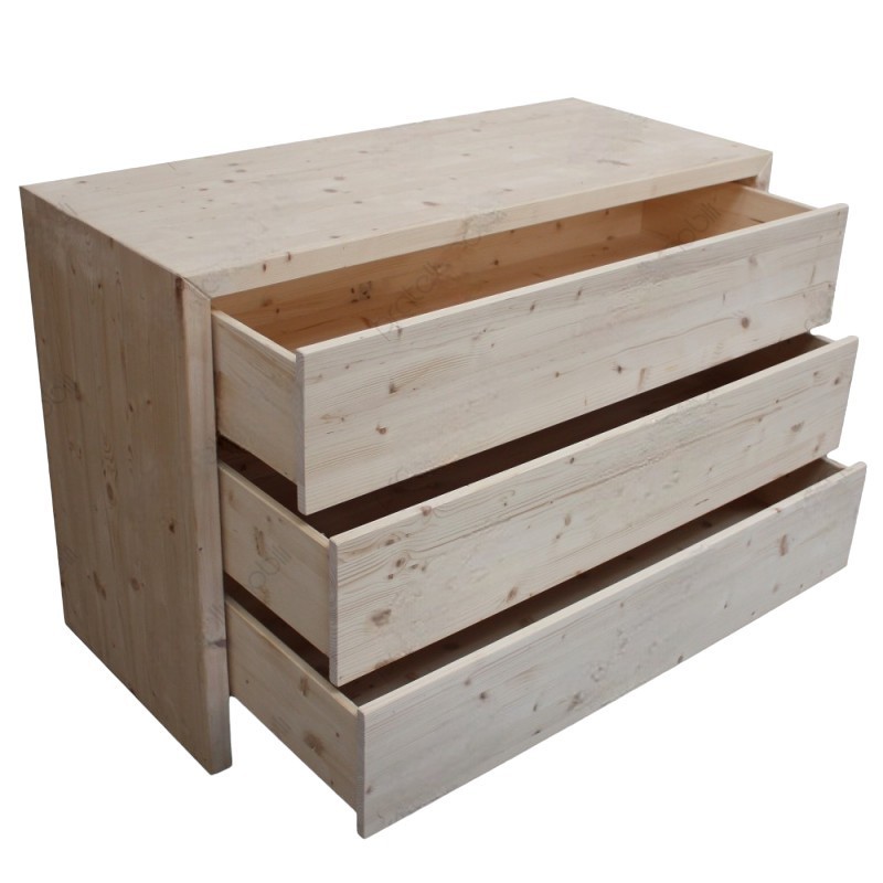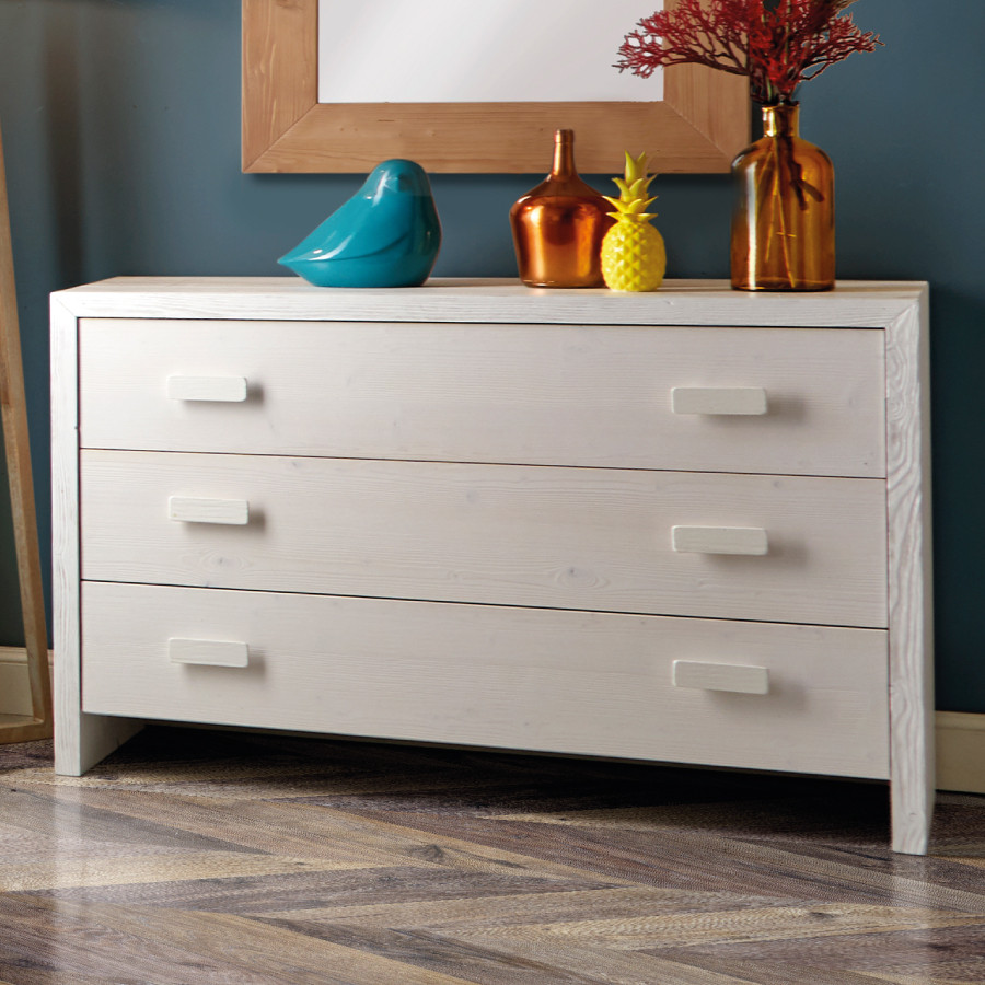 CASSETTIERA 3 CASSETTI SHABBY BIANCO IN LEGNO MASSELLO DI ABETE 120x50x80 (3317)