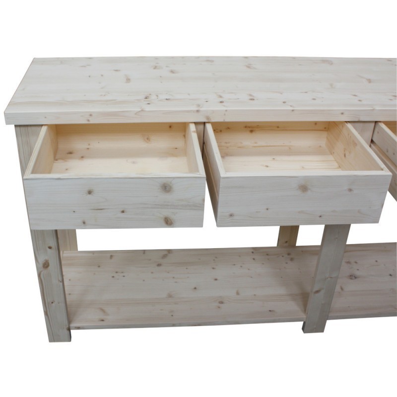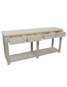 BANCONE 4 CASSETTI 2 RIPIANI SHABBY VERDE IN LEGNO MASSELLO 200x50x105