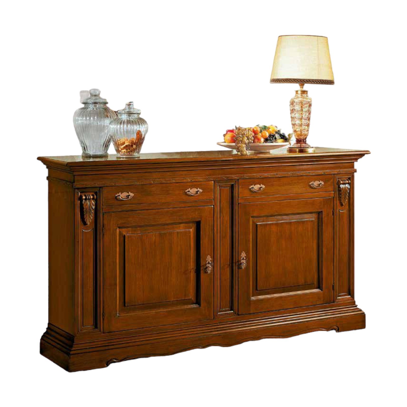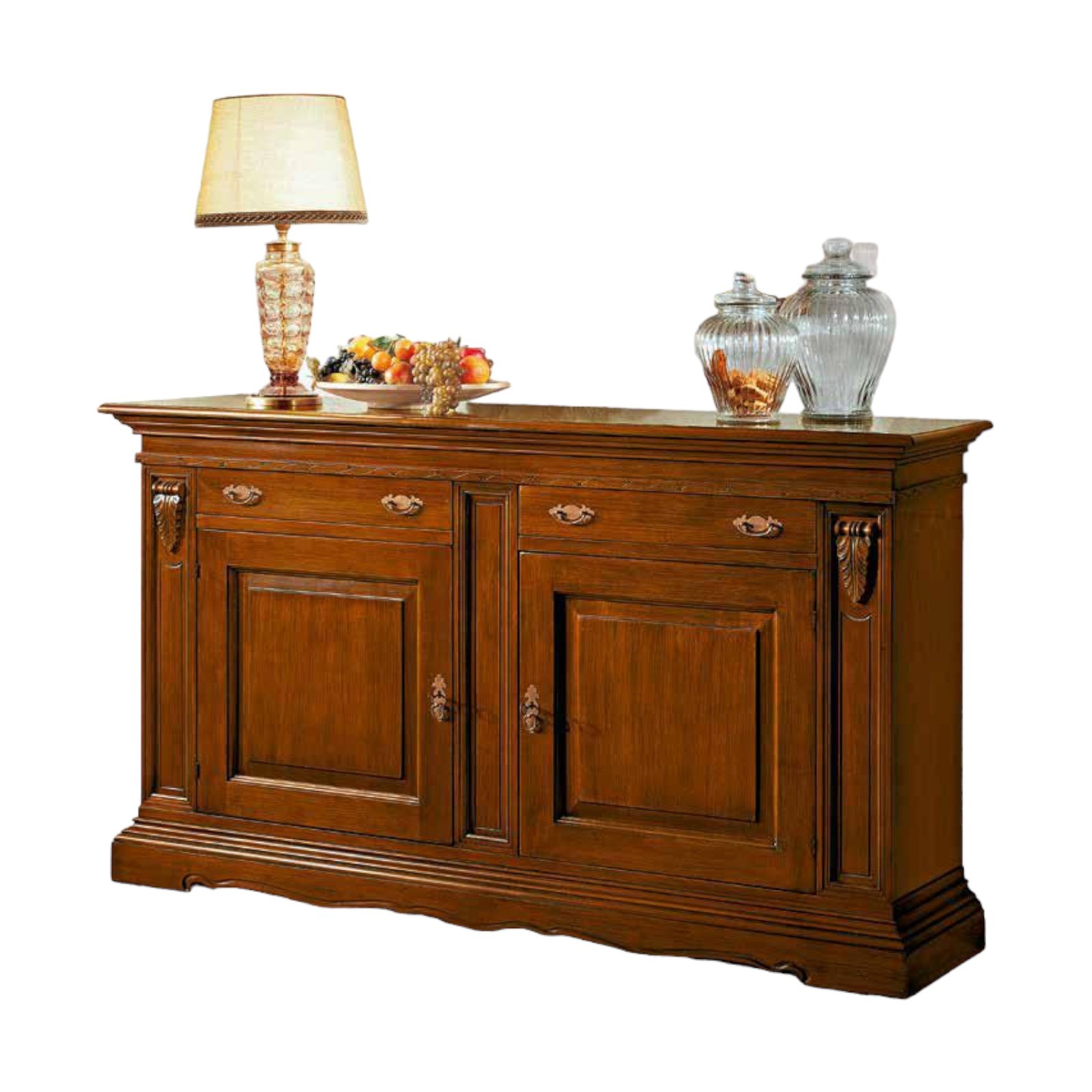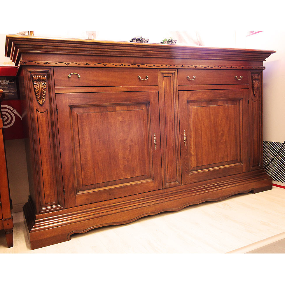 CREDENZA 2 ANTE 2 CASSETTI IN LEGNO TINTA NOCE