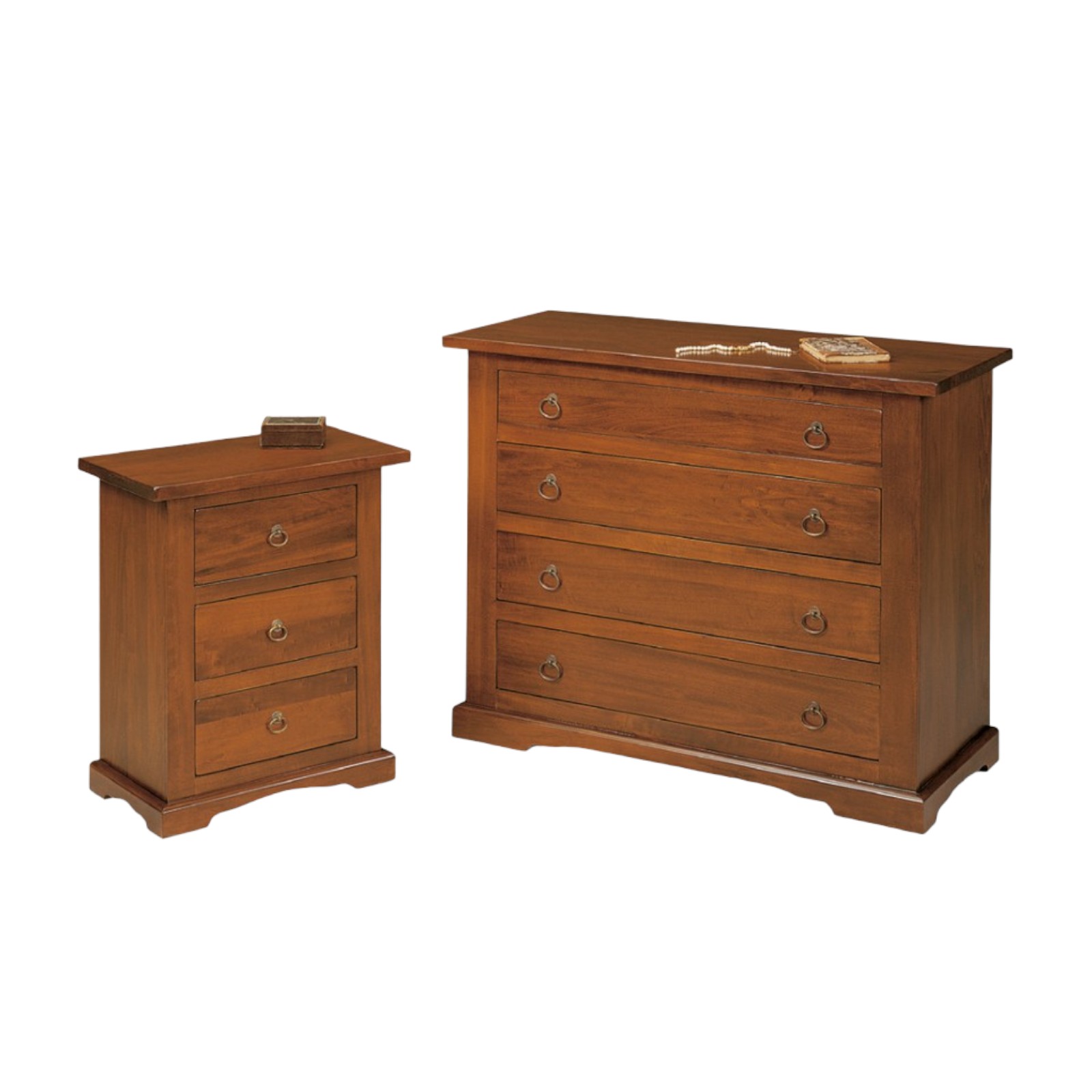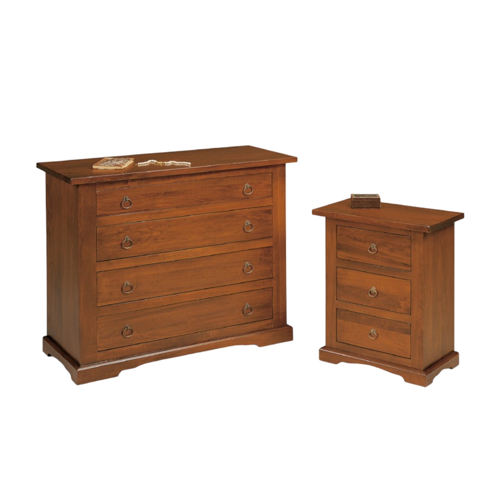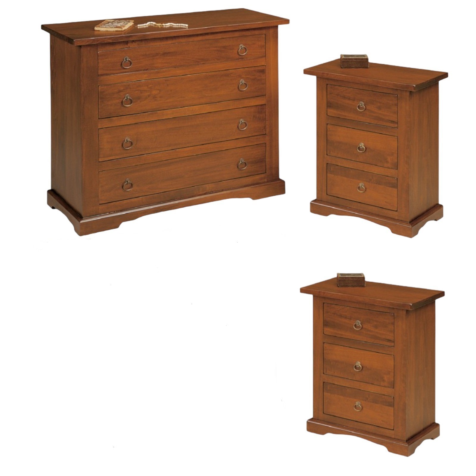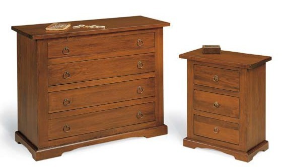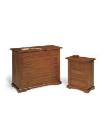 DESCRIZIONE : Gruppo comò e 2 comodini.Sia il comò che i comodini sono dotati zoccolo a terra e cassetti in luce