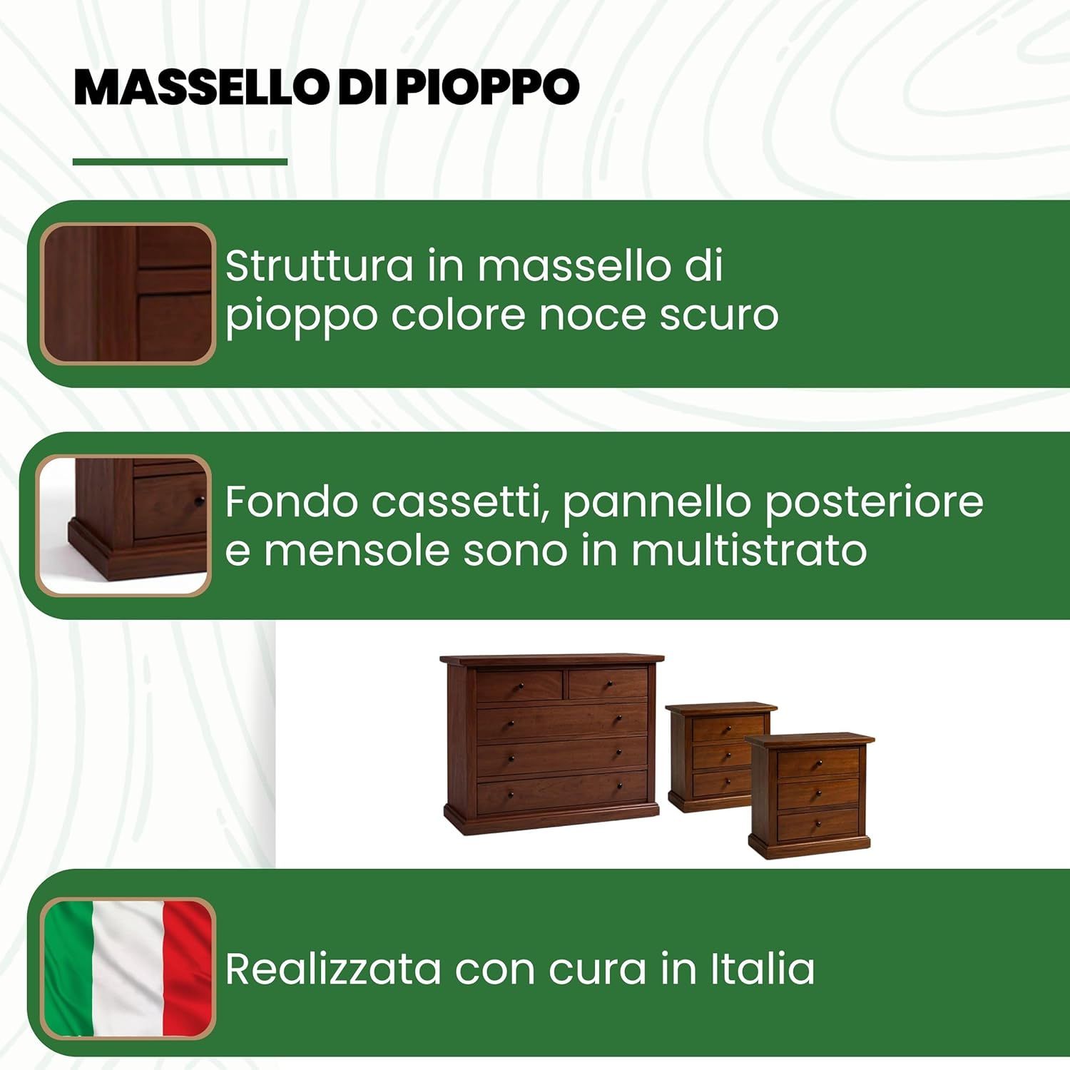 materiali: legno di pioppo e parti in agglomerato