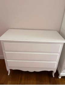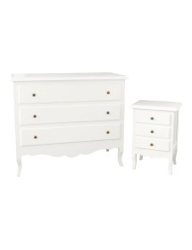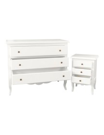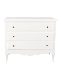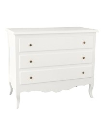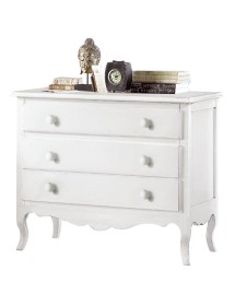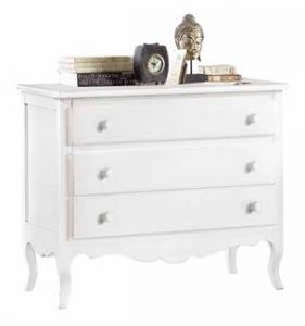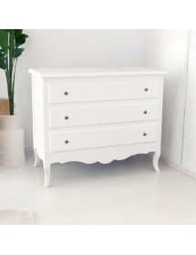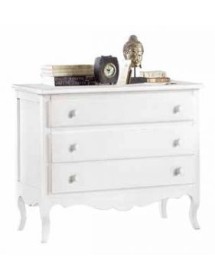DESCRIZIONE : Comò con 3 cassetti, in legno massello di pioppo.Il comò ha i cassetti in battuta e le gambe sagomate si sposano alla perfezione con le cimase sottostanti dalle forme sinuose.
