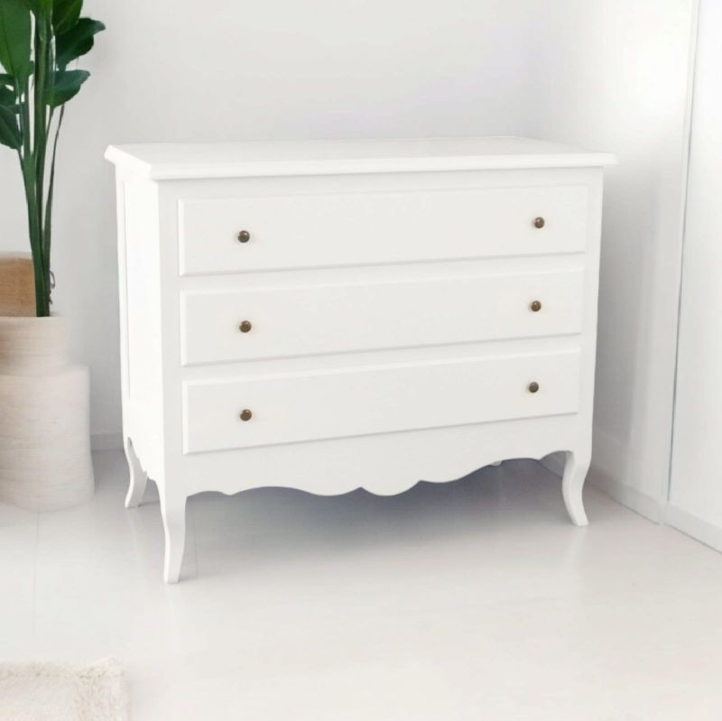 COMO' 3 CASSETTI CLASSICO SAGOMATO BIANCO 107x52X89 VISTA FRONTALE