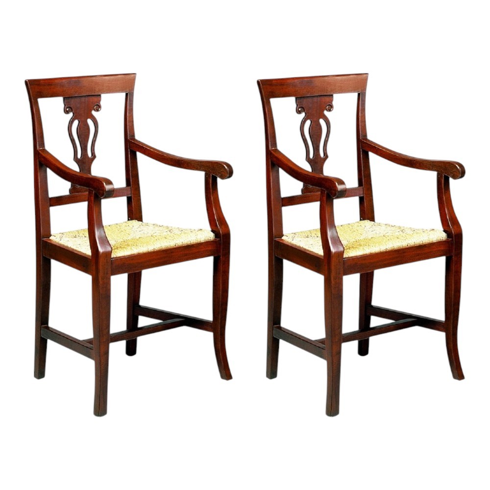 SET 2 CAPOTAVOLA A LIRA IN LEGNO TINTA NOCE SEDUTA PAGLIA
