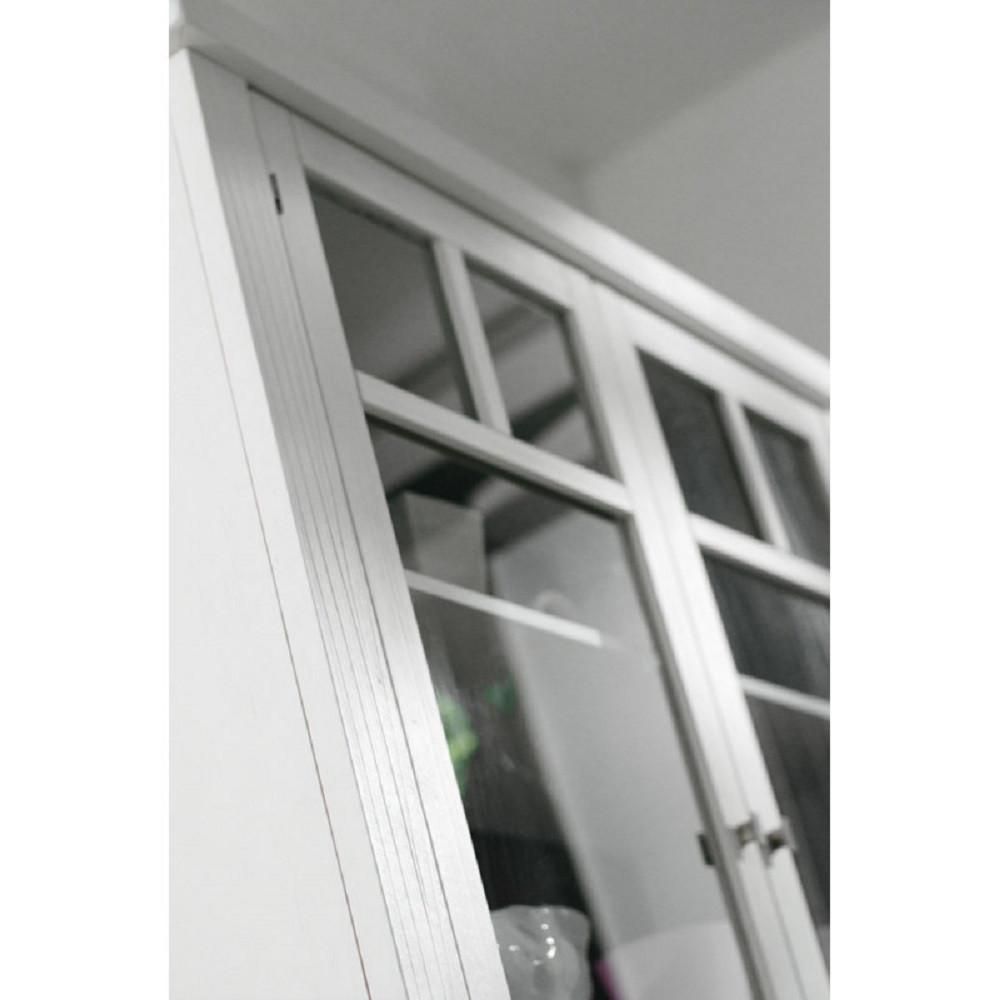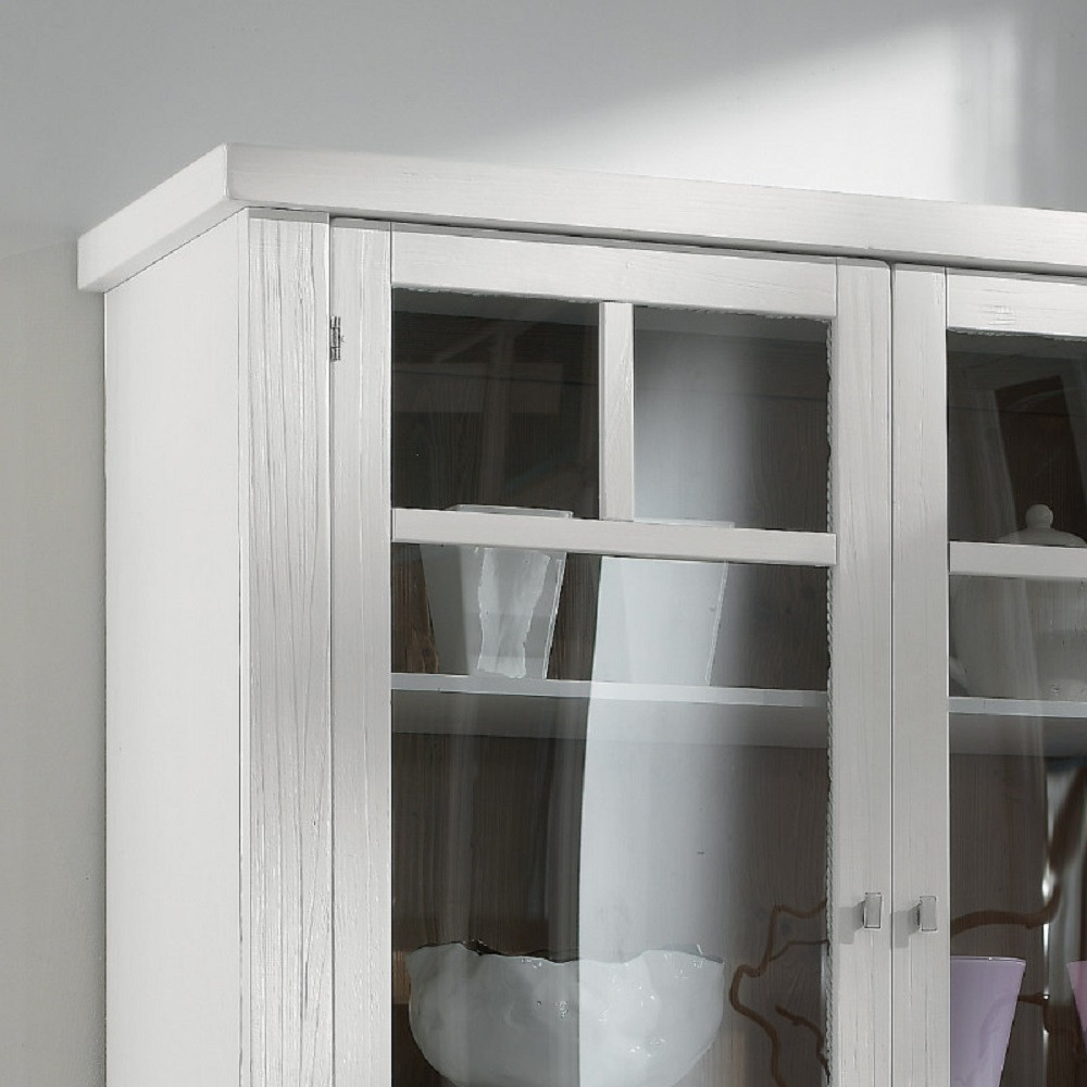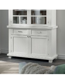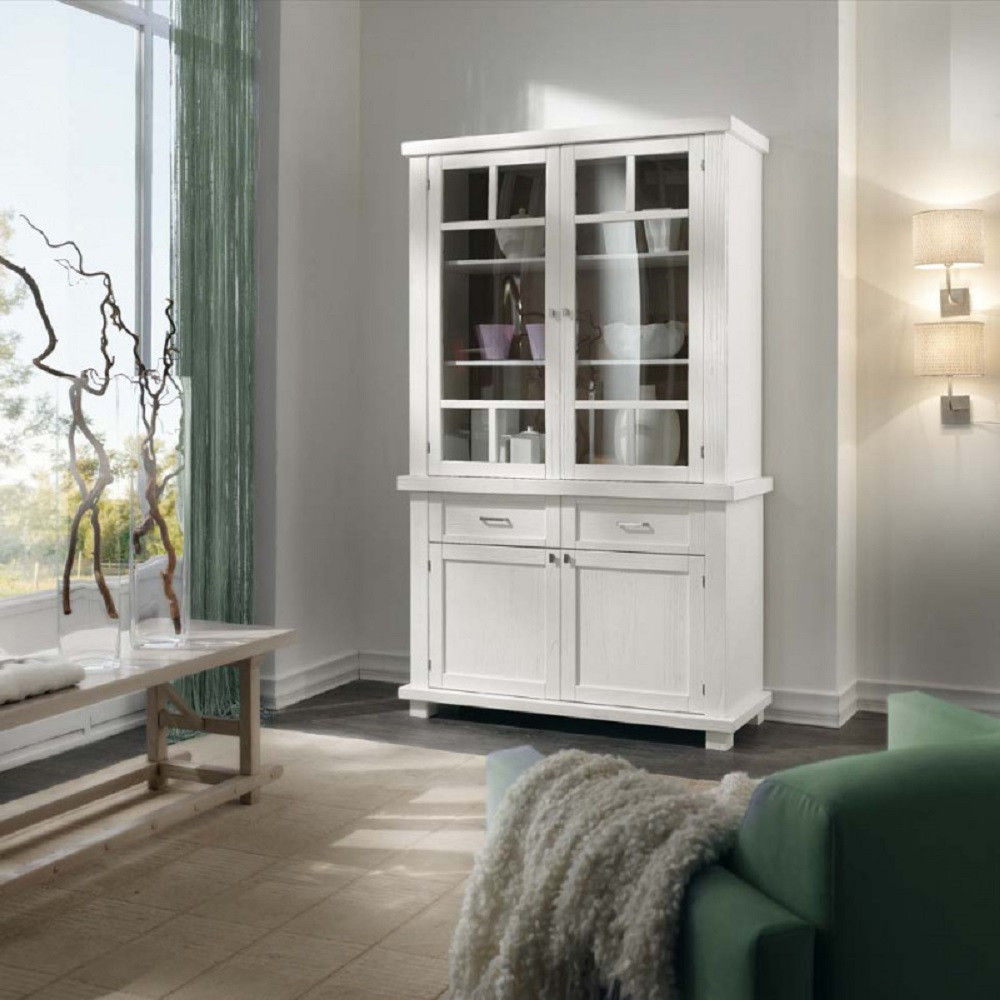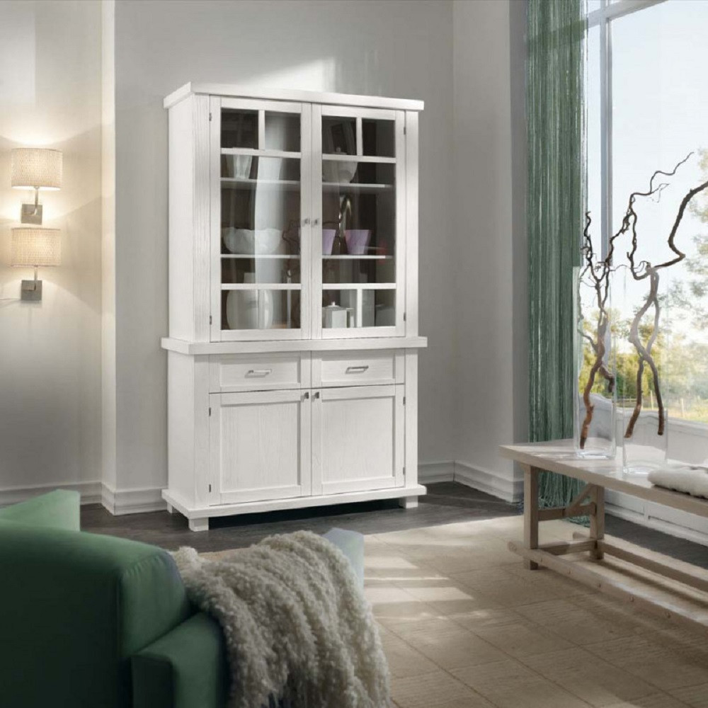 CRISTALLIERA SHABBY IN LEGNO MASSELLO 4 ANTE 2 CASSETTI BIANCO OPACO L.120 P.45 H.198