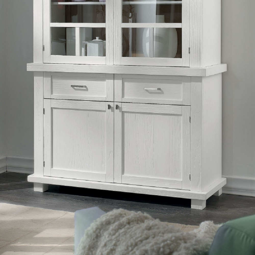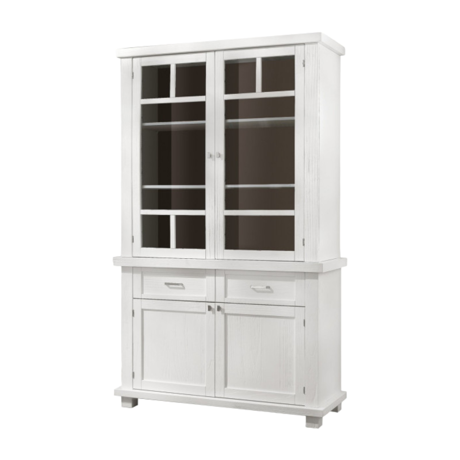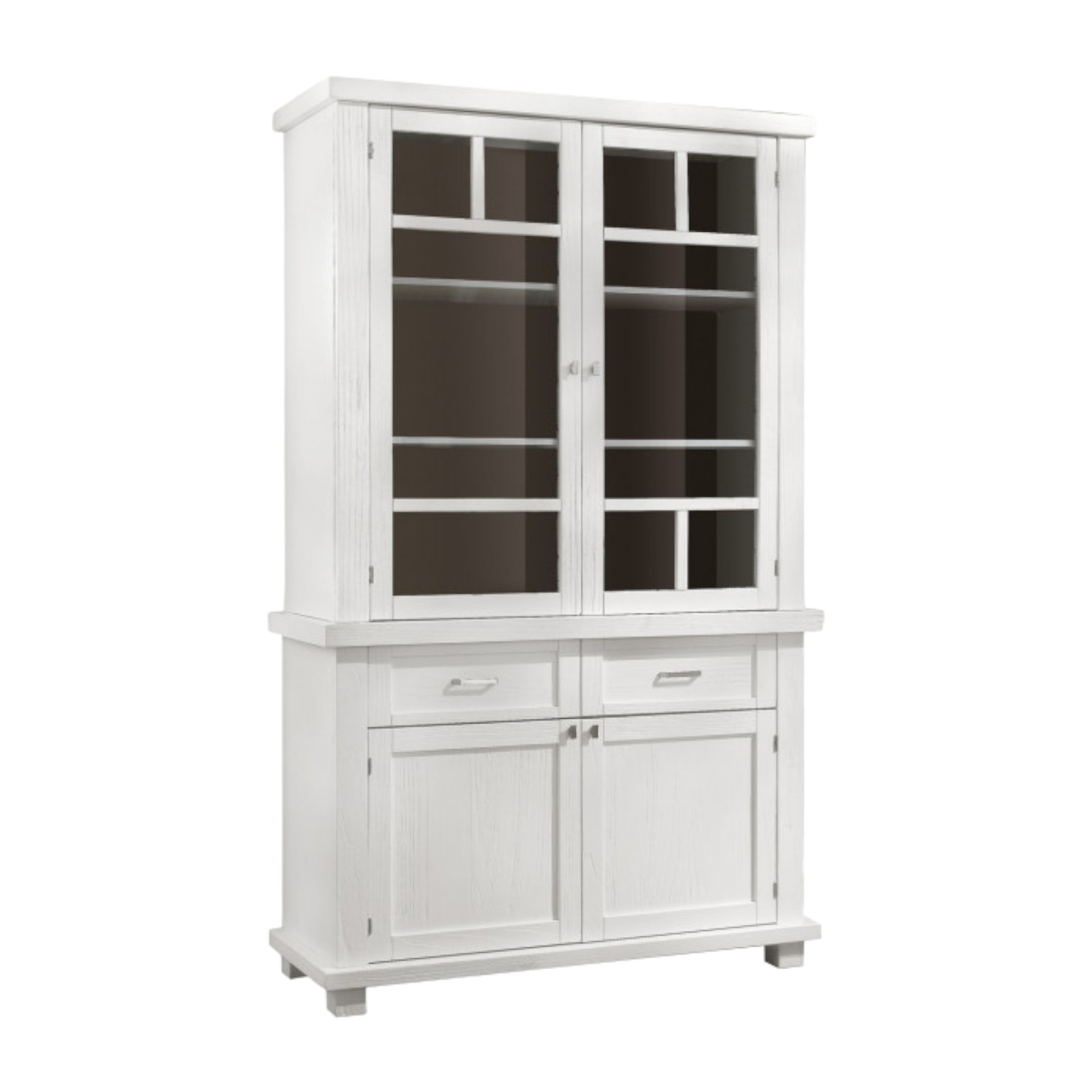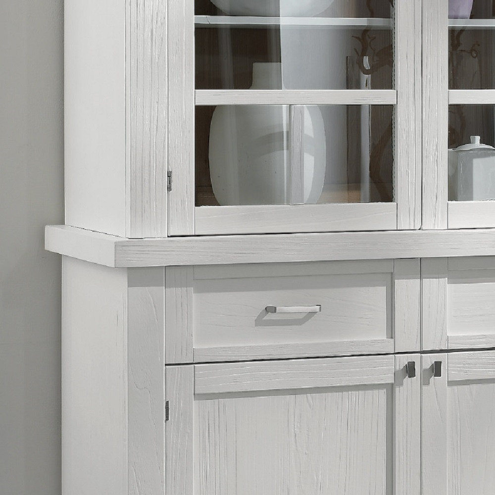 CRISTALLIERA SHABBY IN LEGNO MASSELLO 4 ANTE 2 CASSETTI BIANCO OPACO L.120 P.45 H.198