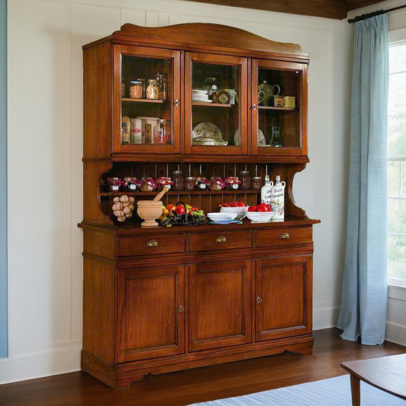 CRISTALLIERA IN LEGNO MASSELLO 6 ANTE 3 CASSETTI TINTA NOCE L.155 P.52 H.213