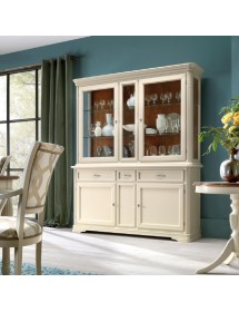 CRISTALLIERA SHABBY IN LEGNO MASSELLO 4 ANTE 3 CASSETTI BEIGE OPACO L.180 P.50 H.220