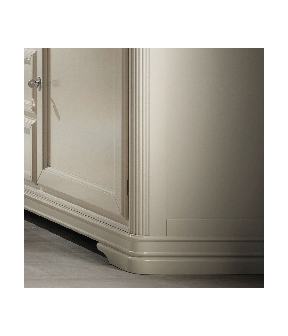 - Telaio cassetti, spalle, profili e piedi: legno massello di tiglio o toulipier.