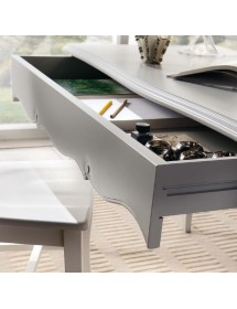 Scrittoio stile shabby di forma rettangolare con piano sagomato con una cornice. Un comodo cassetto permette di depositare tutto ciò che è utile per scrivere.