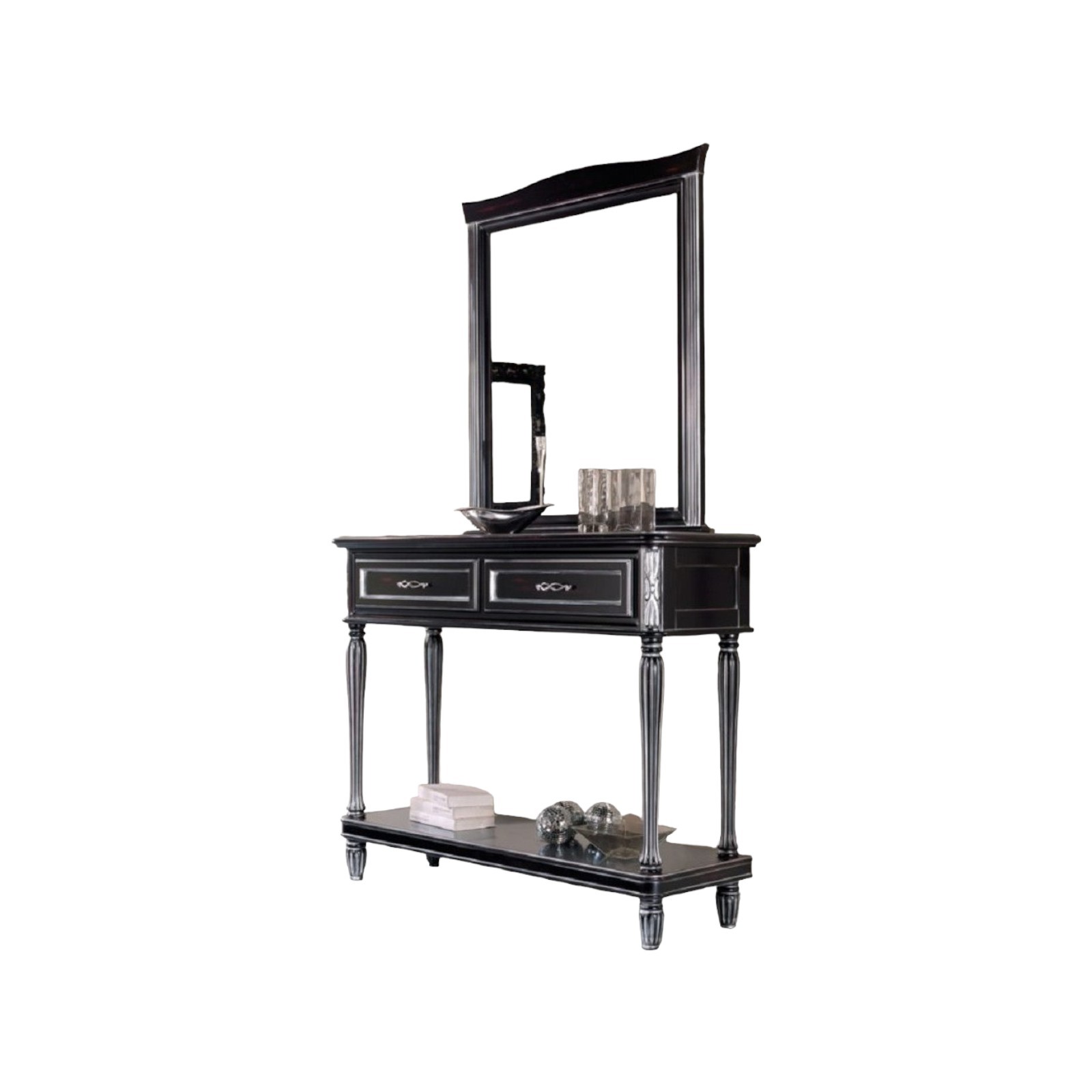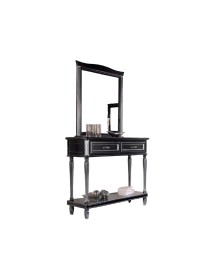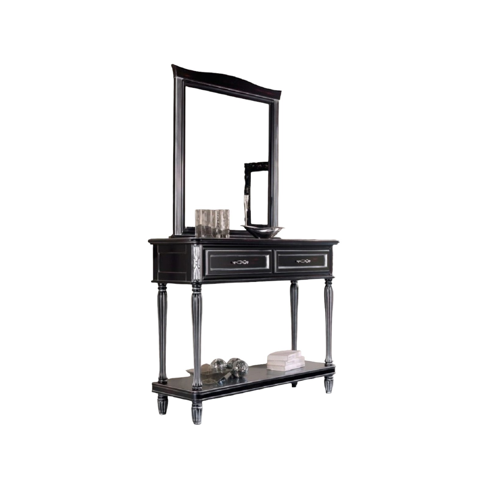 CONSOLLE SHABBY 2 CASSETTI E SPECCHIO IN LEGNO NERO/ARGENTO L.120 P.40 H.98