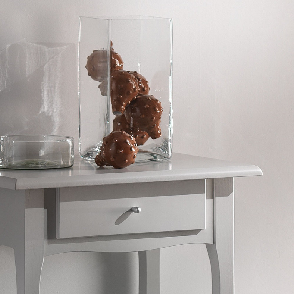 Consolle con un cassetto e gambe sagomate, di piccole dimensioni. Perfetta per risolvere con stile l’arredamento di un ingresso o di un punto di passaggio.