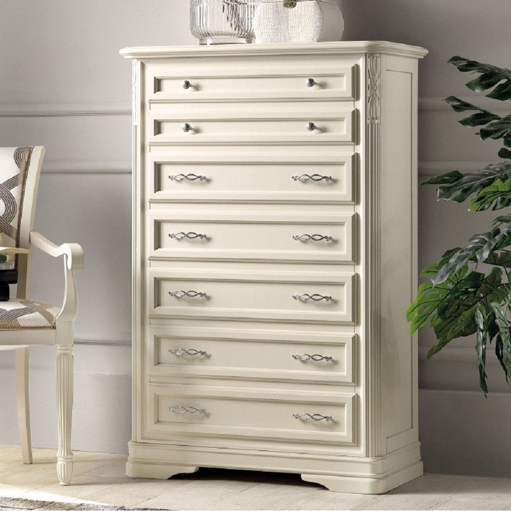 SETTIMANALE CLASSICO 7 CASSETTI IN LEGNO MASSELLO AVORIO L.85 P.42 H.128
