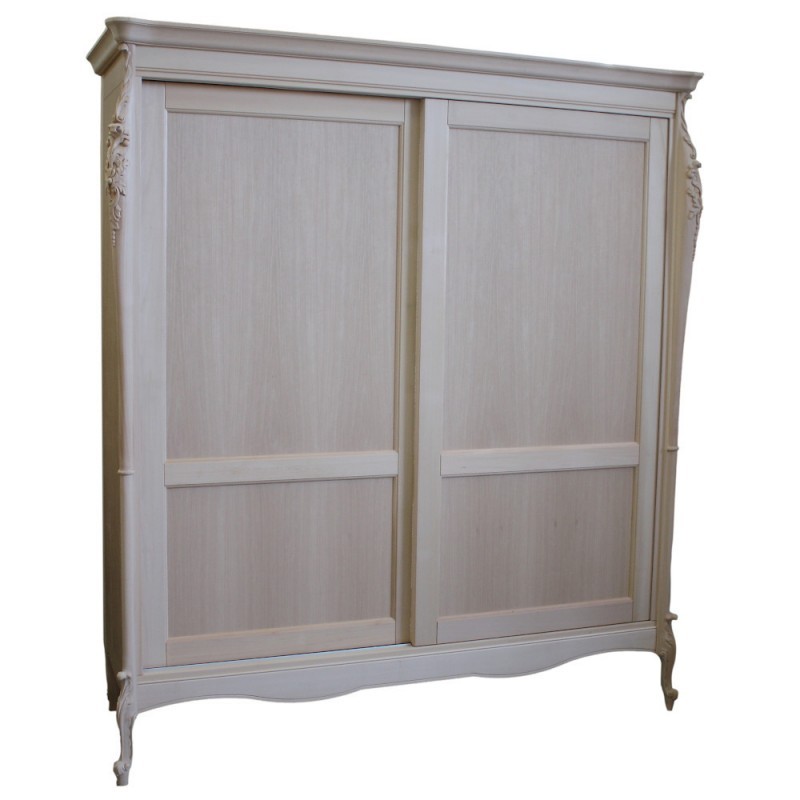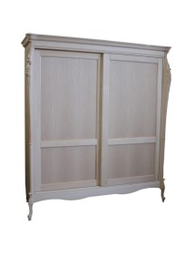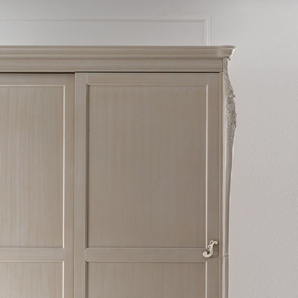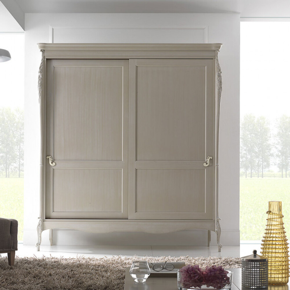 ARMADIO 2 ANTE SCORREVOLI CLASSICO IN LEGNO CON INTAGLIO AVORIO L.200 P.69 H.225