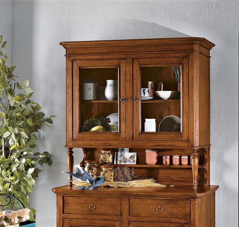 CRISTALLIERA NAPOLETANA IN LEGNO MASSELLO 4 PORTE 2 CASSETTI TINTA NOCE L.116 P.49 H.206 (6011+6012)