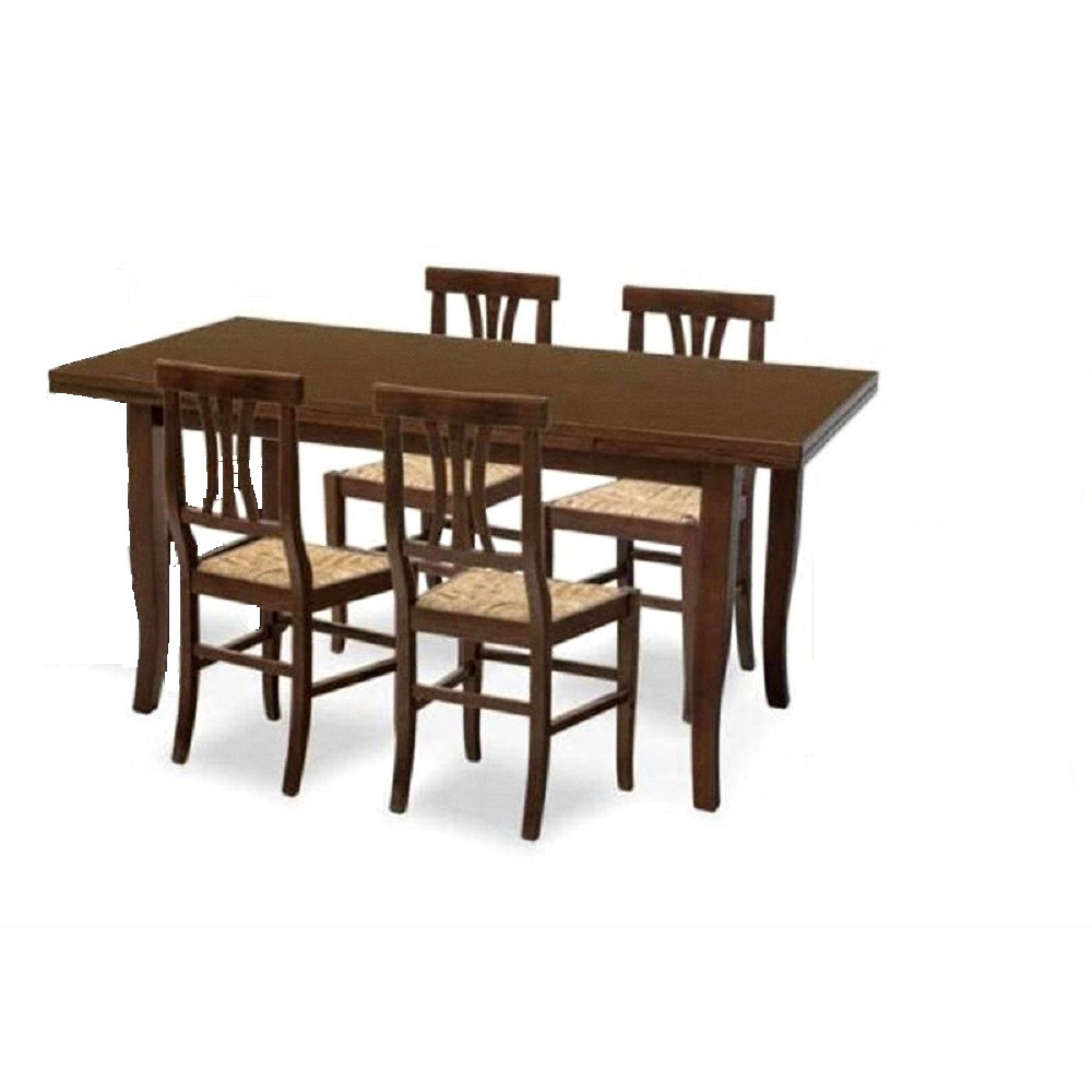 SET TAVOLO RETTANGOLARE E 4 SEDIE NOCE IN LEGNO ALLUNGABILE 120X80