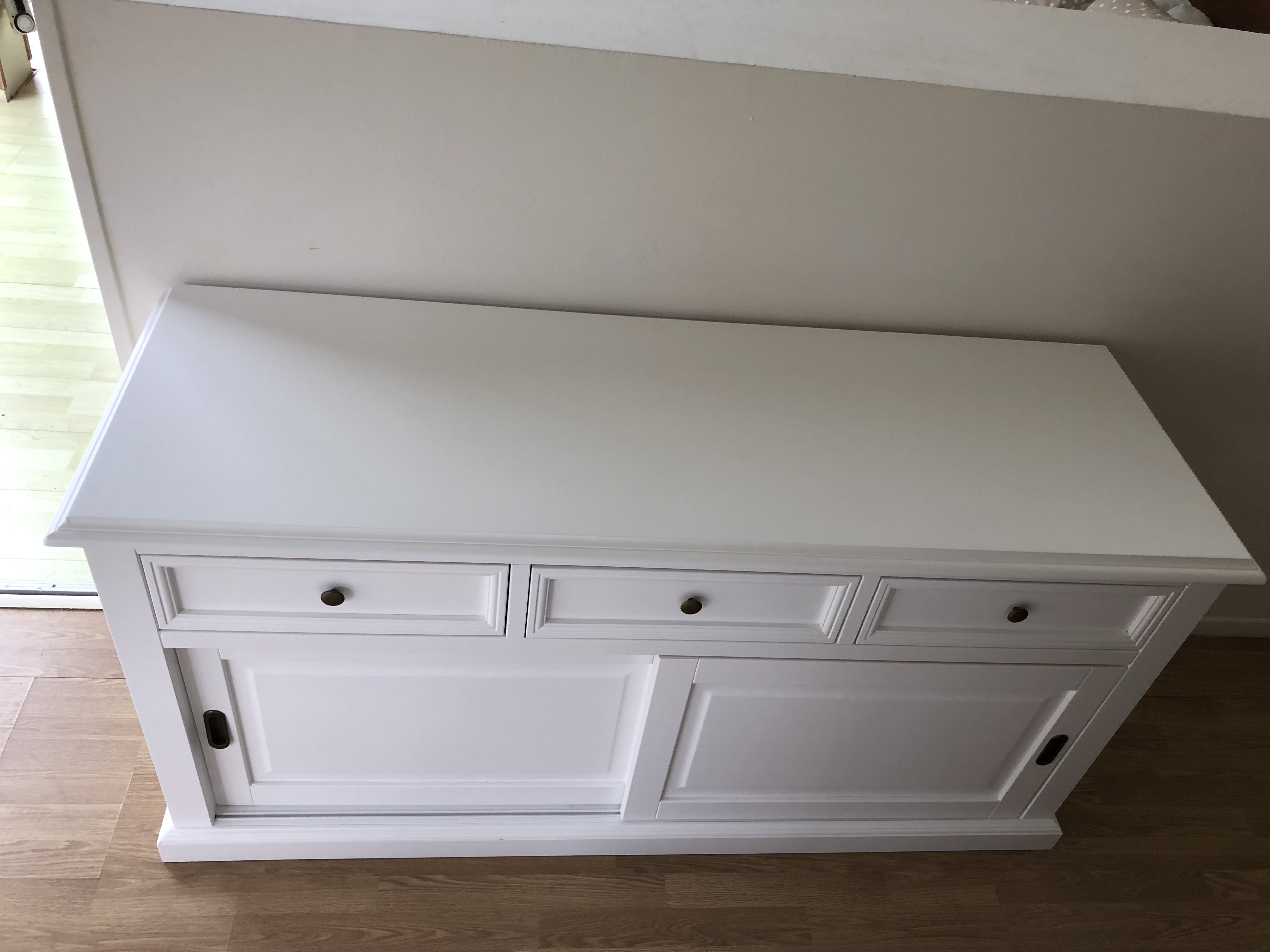 CREDENZA 2 PORTE SCORREVOLI 3 CASSETTI LACCATO BIANCO OPACO