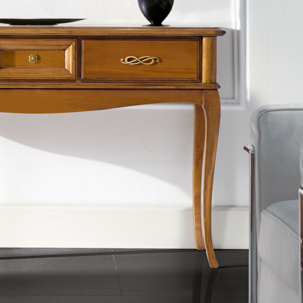 La consolle in legno è la rappresentazione dello stile classico. Elegante e raffinata , combina perfettamente il suo stile unico con la sua estrema versatilità . Un classico che non passerà mai di moda nel mondo dell' arredamento . Ideale per soggiorni ,corridoi e camere da letto. l' aspetto ineguagliabile e l' eleganza dei dettagli ne fanno un mobile il cui fascino incanterà gli appassionati di questo tipo di arredamento . La linea del mobile è una collezione di mobili artigiani realizzati esclusivamente in Italia. La cura dei particolari e l' impatto estetico rendono questa linea di mobili unica e esclusiva nel suo genere .