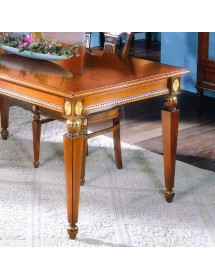 Tavolo classico rettangolare che possiede un piano spazioso per ospitare la famiglia e amici , donerà un' atmosfera unica e elegante al tuo soggiorno. La convivialita' e garantita , non ti resta che sederti a tavola! l' aspetto ineguagliabile e l' eleganza dei dettagli ne fanno un mobile il cui fascino incanterà gli appassionati di questo tipo di arredamento . La linea del mobile è una collezione di mobili artigiani realizzati esclusivamente in Italia. La cura dei particolari e l' impatto estetico rendono questa linea di mobili unica e esclusiva nel suo genere .