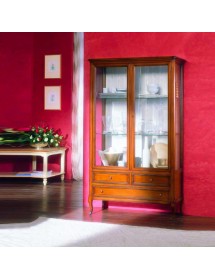 VETRINA CLASSICA IN LEGNO 2 PORTE 3 CASSETTI FINITURA BASSANO L.108 P.40 H.190