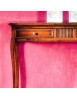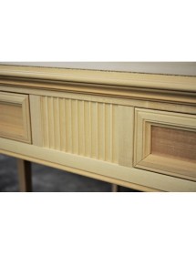 Consolle a due cassetti. Gambe sagomate e arrotondate. Frontali dei cassetti riquadrati con cornici a più sagome con intaglio centrale.