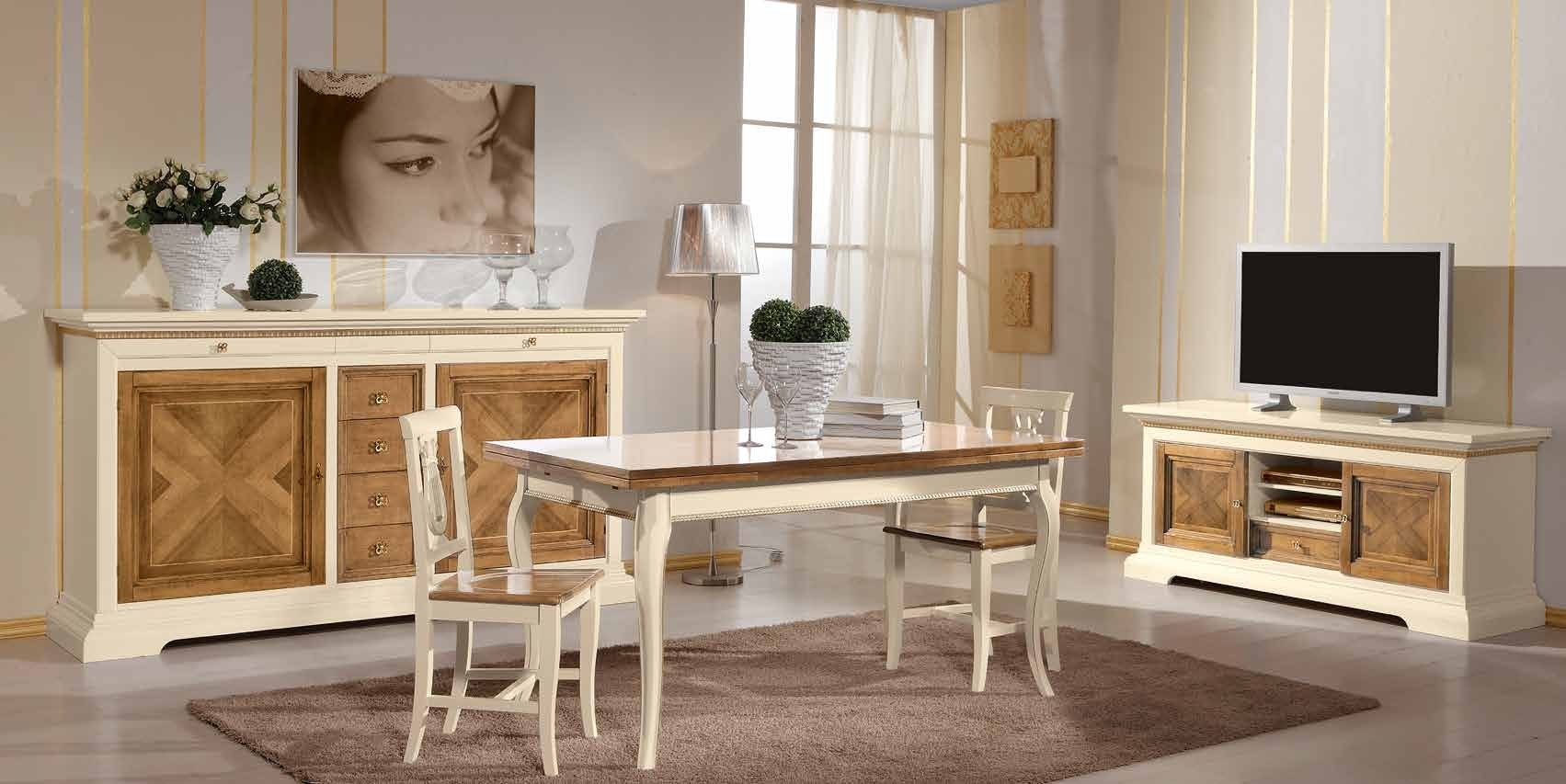 PORTA TV IN LEGNO ARTE POVERA AVORIO E NOCE 169X53X75