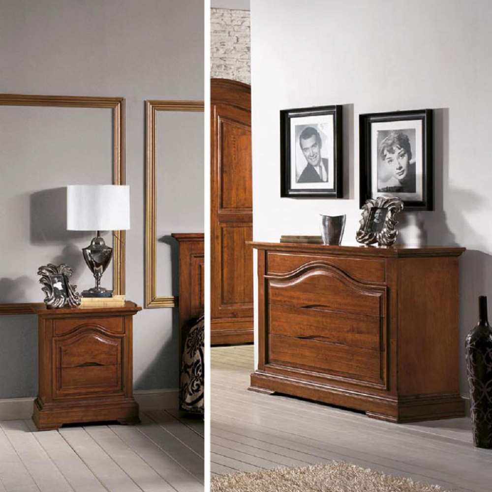 GRUPPO COMO' 2 COMODINI CLASSICO IN LEGNO SAGOMATO TINTA NOCE