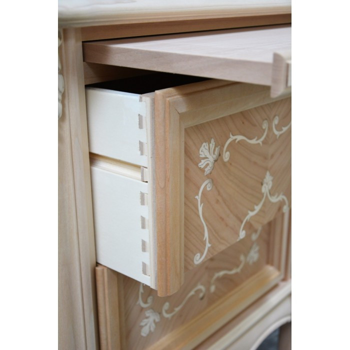 - I cassetti hanno gli incastri a coda di rondine e scorrono su guide in legno