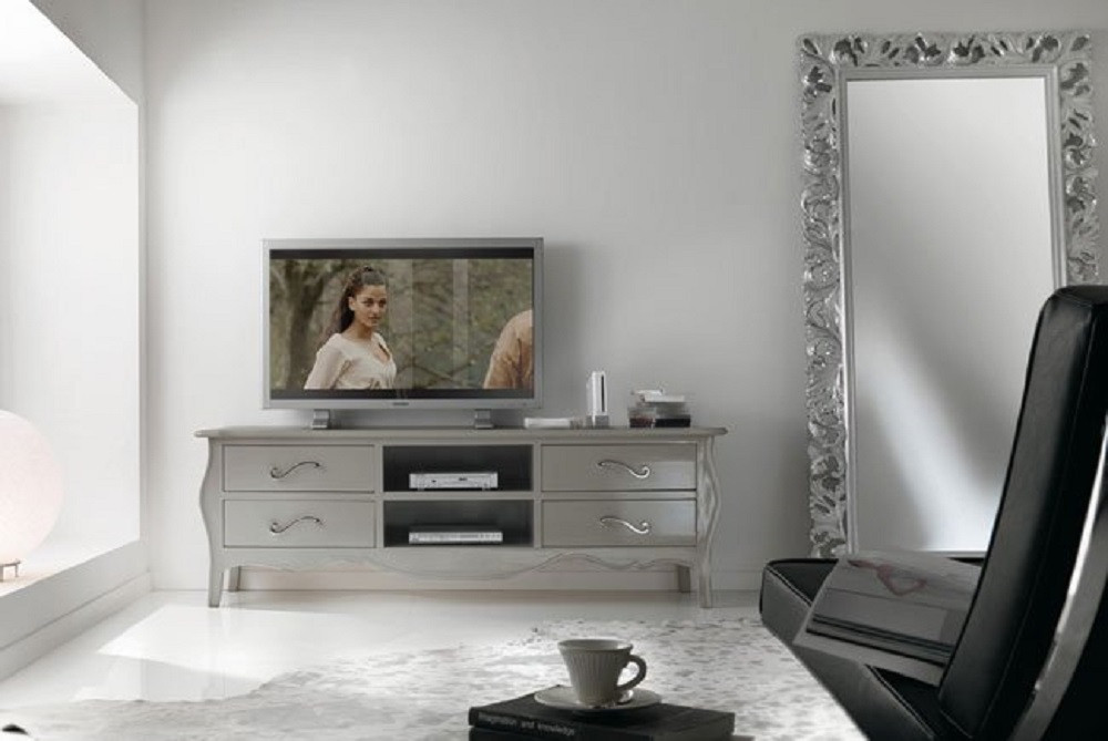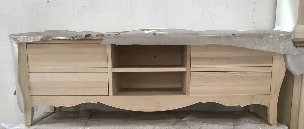PORTA TV CLASSICO IN LEGNO BOMBATO 4 CASSETTI GREZZO L.182 P.50 H.61 (3026)