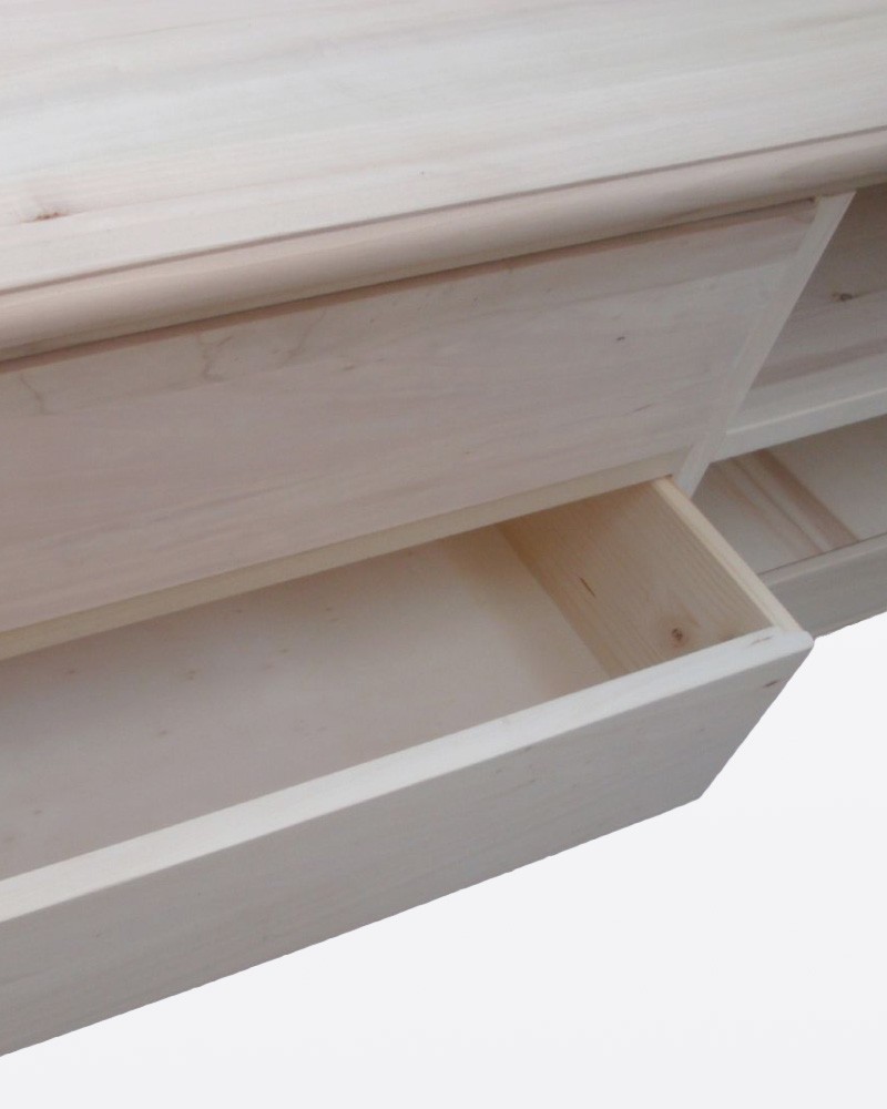 Mobili grezzi non sono rifiniti, consegnati con legno al naturale - non verniciato - e privi di maniglie, pomoli o chiavi e vetri.