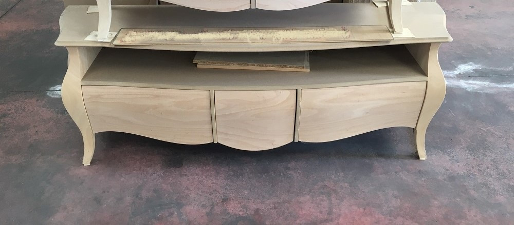 il mobile è pronto per essere verniciato ,sottoposto a un procedimento di levigatura.