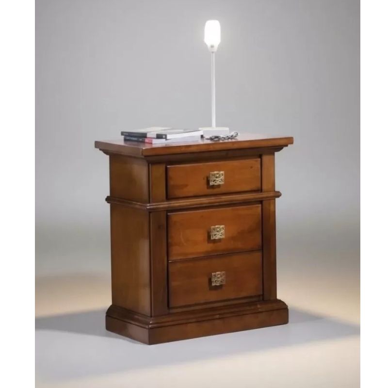 COMODINO CLASSICO IN LEGNO 3 CASSETTI TINTA NOCE L.55 x P.37 H.67