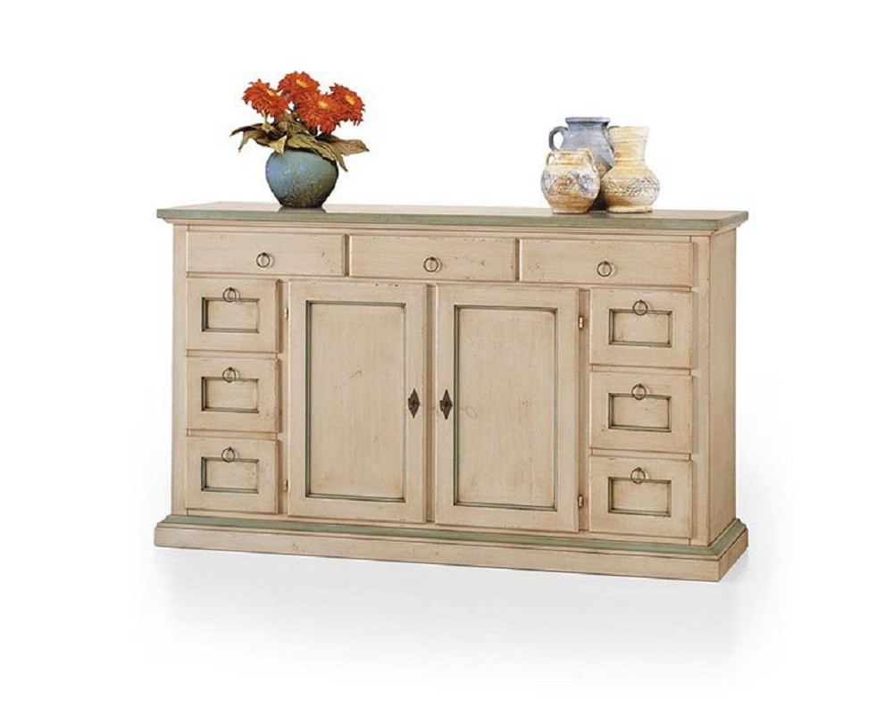 MADIA CREDENZA IN LEGNO 2 PORTE 9 CASSETTI GREZZO L.160 P.45 H.95 (984)