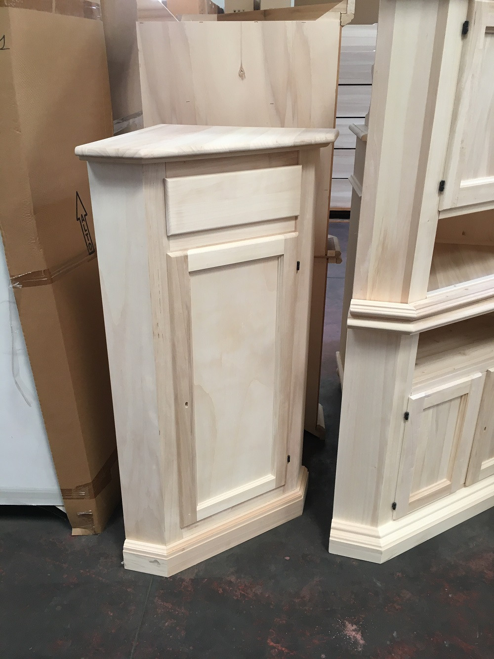 Mobili grezzi non sono rifiniti, consegnati con legno al naturale - non verniciato - e privi di maniglie, pomoli o chiavi e vetri.