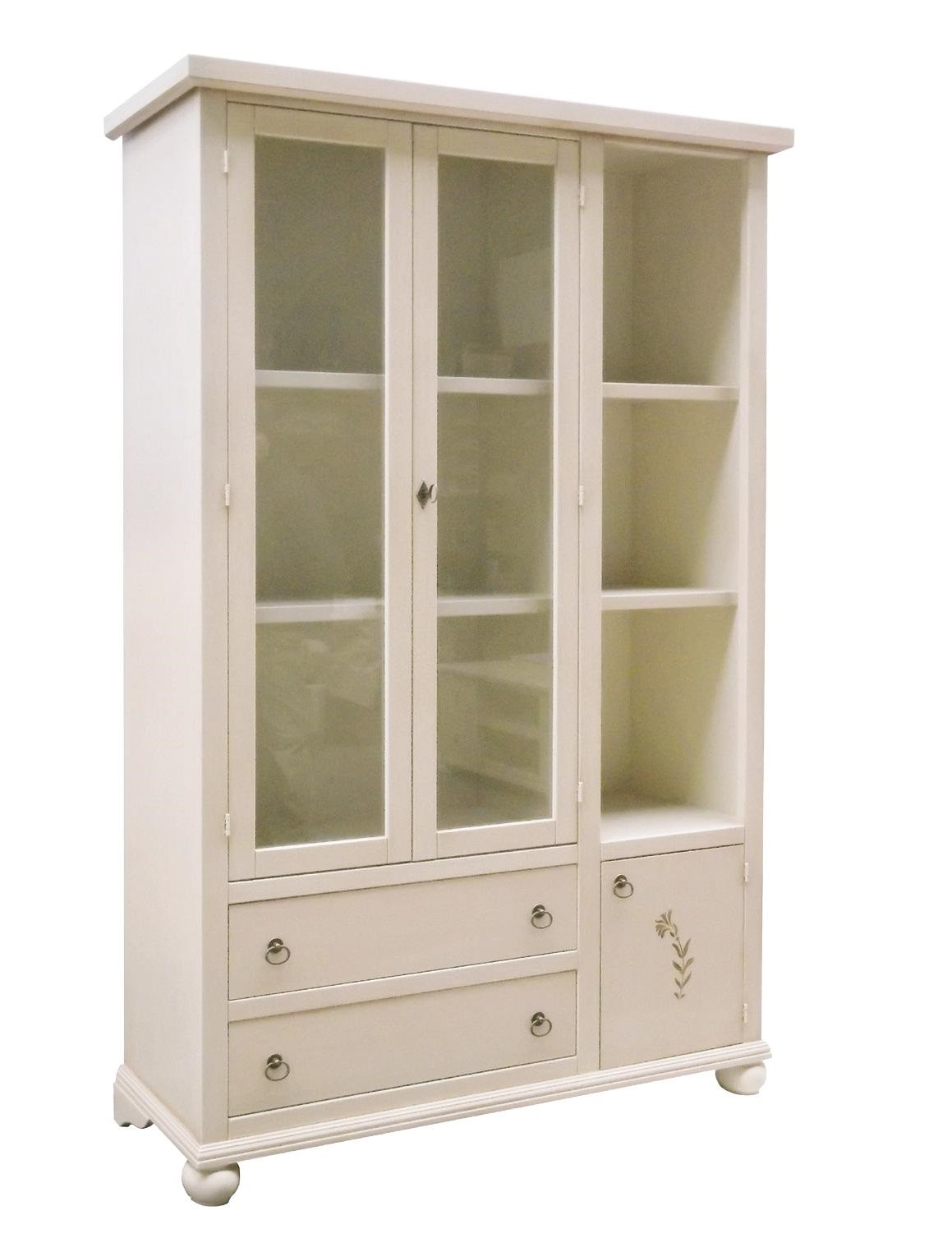 FINITURA : Laccato avorio opaco con decoro floreale solamente sulla portina inferiore della vetrina