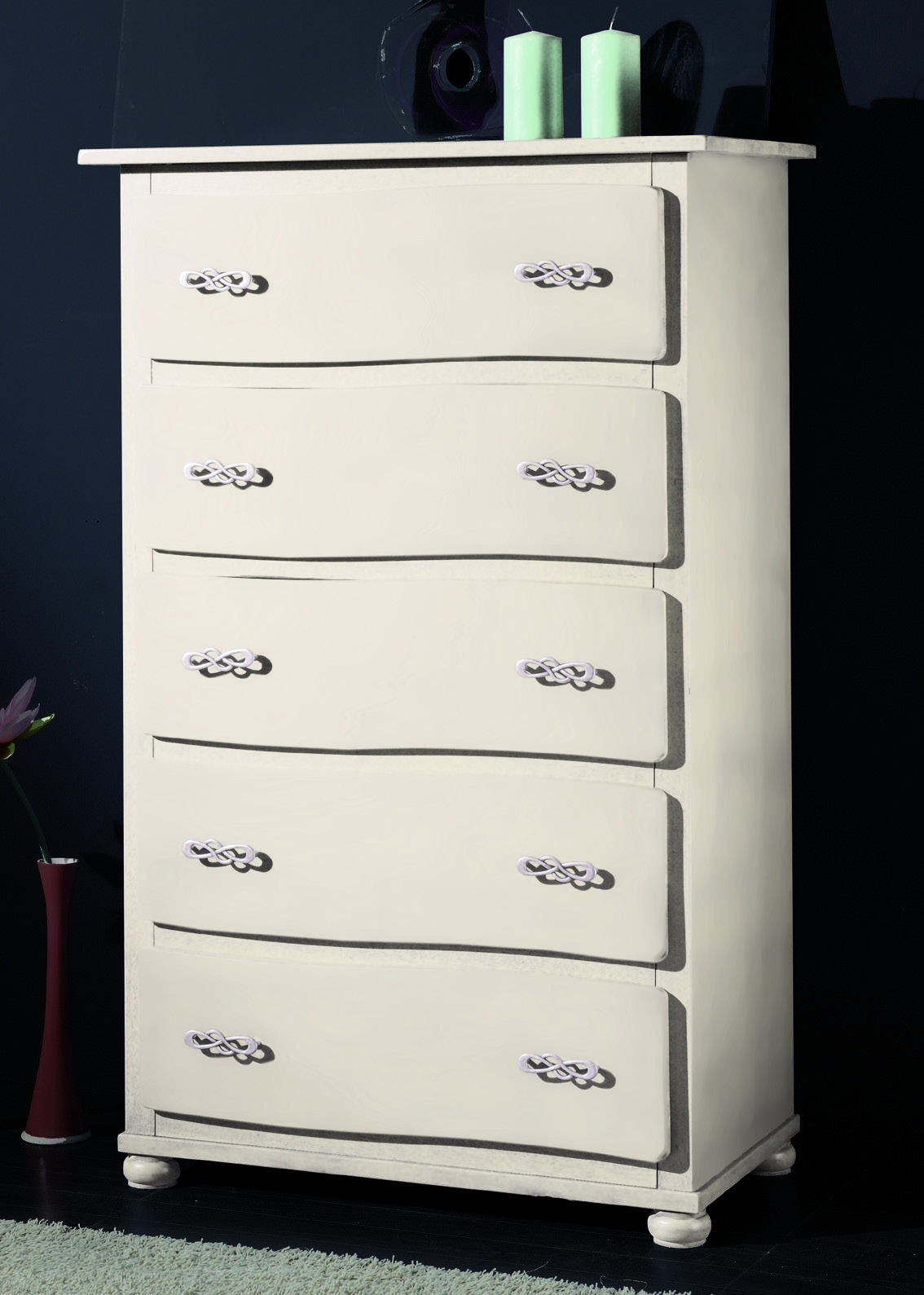 CASSETTIERA CLASSICA ONDA 5 CASSETTI IN LEGNO AVORIO L.90 P.50 H.145